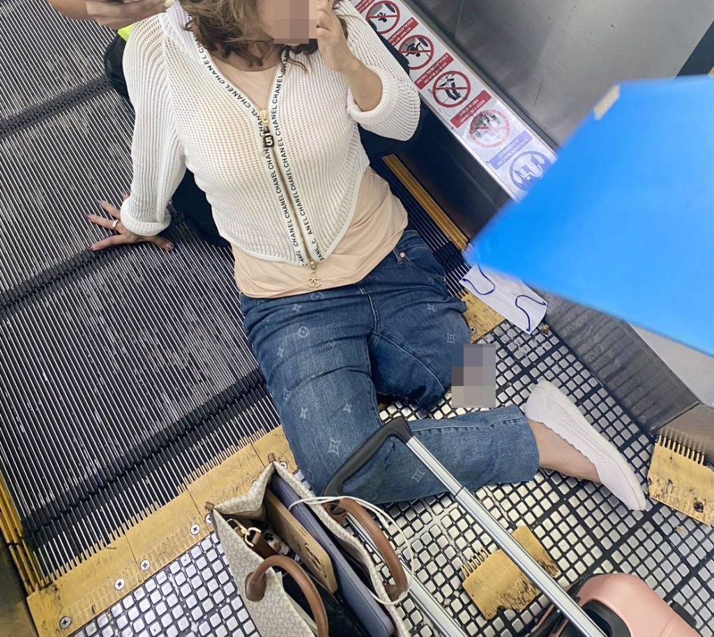 EIT ရဲ့ ကနဦး စုံစမ်းစစ်ဆေးချက်အရ သူမရဲ့ခရီးဆောင်အိတ်က ဘီးဟာ ရွေ့လျားနေတဲ့ လူသွားလမ်း စက်လှေကားရဲ့ အဆုံးပိုင်းခြေနင်းပြားကို ထိခိုက်ပျက်စီးကျိုးပဲ့စေပြီး သူမခြေထောက်တစ်ချောင်းလုံး ကျွံကျစေတဲ့အထိ အပေါက်တစ်ခုဖြစ်ပွားစေခဲ့ကာ ခြေထောက်ညပ်ခဲ့ရတဲ့ ခုလို မတော်တဆဖြစ်ရပ် ဖြစ်ခဲ့ရတယ်လို့ သိရပါတယ်။