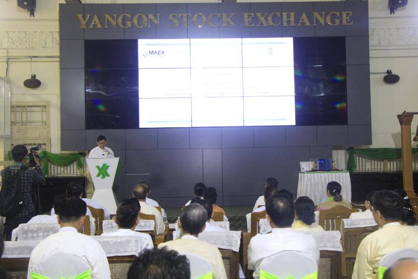 မြန်မာအက်ဂရိုအိတ်ချိန်း အများနှင့်သက်ဆိုင်သော ကုမ္ပဏီလီမိတက်(MAEX)က ဇူလိုင်လ ၃ ရက်တွင် ရန်ကုန်စတော့အိတ်ချိန်း(YSX)၏ စာရင်းဝင်ကုမ္ပဏီအဖြစ် အစုရှယ်ယာများ စတင်ထုတ်ရောင်းချခဲ့ရာ အဆိုပါ ပထမနေ့တွင် အစုရှယ်ယာ ၁ သိန်း ၁ သောင်းကျော် အရောင်းအဝယ်ဖြစ်ပေါ်ခဲ့ကြောင်း သိရသည်။