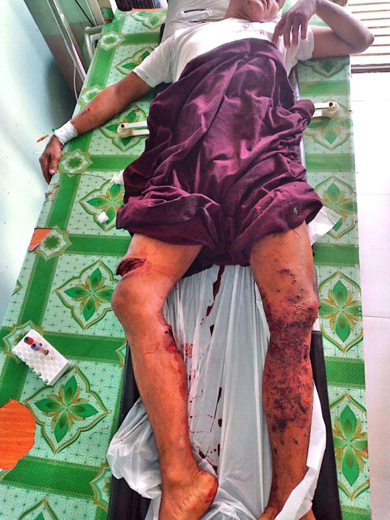ယင်းပေါက်ကွဲမှုကြောင့် အသက် ၄၀ နှစ်ခန့် အမျိုးသားသည် ယာဘက်ဒူးအထက်ကို မိုင်းစထိမှန်စုတ်ပြဲဒဏ်ရာ ၁ ချက်၊ ယာဘက်ခြေသလုံးမိုင်းစထိမှန်ကာ စုတ်ပြဲသွားသည့်ဒဏ်ရာ ၁ ချက်၊ ဝဲဘက်ပေါင်ရင်း/ဝဲဘက်ဒူးကိုလည်း မိုင်းစထိမှန်ဒဏ်ရာ ၂ ချက်၊ ဝဲဘက်လက်ခုံပွန်းပဲ့ဒဏ်ရာ ၁ ချက်(စိုးရိမ်ရ)နှင့် အသက် ၁၁ နှစ်အရွယ် ကလေးငယ်တွင်မူ ယာဘက်နားထင် ဖူးရောင်ဒဏ်ရာ ၁ ချက်၊ ရင်ဘတ်ကို မိုင်းစထိမှန်သွားသည့်ဒဏ်ရာ ၁ ချက်(စိုးရိမ်ရ) စသည့်ဒဏ်ရာများ ရရှိခဲ့ကြောင်း သိရသည်။