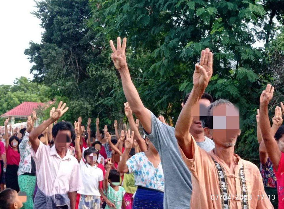 မြိုင်မြို့နယ်ရှိ NUG, PDF ထောက်ခံသူများ ယမန်နေ့က ဆန္ဒပြနေစဥ်။