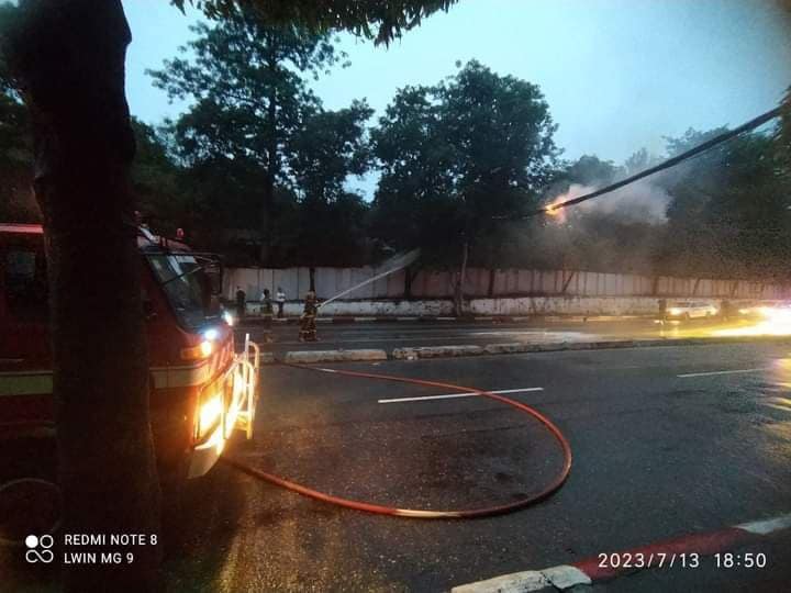 ဖြစ်စဥ်မှာ ကားလမ်းအလယ်ကနေ တစ်ဖက် အစိုးရဌာနဝန်းဘက်ကို သွယ်တန်းထားတဲ့ ဝါယာကြိုးတွေ မီးလောင်မှုဖြစ်ပွားတဲ့အတွက် မရမ်းကုန်းမြို့နယ် မီးသတ်စခန်းနဲ့ မရမ်းကုန်း EPC ကို တာဝန်သိပြည်သူတွေနဲ့ လူမှုကူညီရေးအသင်းတွေက အကြောင်းကြားတယ်လို့ သိရပါတယ်။