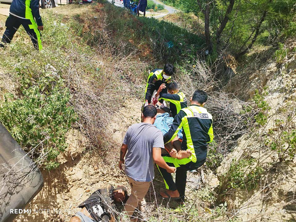 “၁၂ နာရီ မိနစ် ၄၀ လောက်မှာ ကားတစ်စီးမှောက်တယ်ဆိုပြီး ဖုန်းသတင်းဝင်တော့ လူနာအရေအတွက် လေးငါးယောက်လောက် ရှိတယ်ဆိုတော့ အသင်းကနေ ကားသုံးစီးလွှတ်လိုက်တယ်။ မြေပြင်ပေါ်မှ ာမှောက်တယ်ထင်တာ။ ဟိုမှာက မှောက်ပြီးတော့မှ ချောက်ထဲကို ကျနေတာပါ။ ခေါင်းကိုထိထားတဲ့ သတိလစ်လူနာက ၂ ယောက်ပါတယ်။ ကျန်တာကတော့ ပွန်းပဲ့ပေါက်ပြဲ ဒီလောက်ပါပဲ” ဟု ၎င်းက ဆိုသည်။