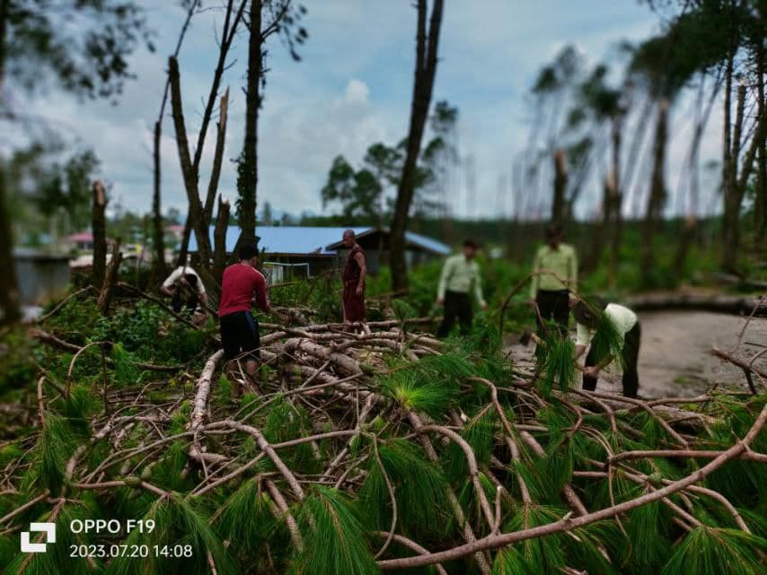 လေပြင်းတိုက်ခတ်မှုကြောင့် ကွတ်ခိုင်မြို့နဲ့ သုံးမိုင်ခန့်အကွာမှာတည်ရှိတဲ့ ပြည်လုံးချမ်းသာဘုန်းတော်ကြီးကျောင်း အမိုးလန်တာတွေအပါအဝင် ကျောင်းအဝင်လမ်းပေါ်က နှစ်ချို့သစ်ပင်ကြီးတွေလည်း လဲကျပြီး လမ်းပိတ်ဆို့နေတဲ့အတွက် မြို့ခံပရဟိတအသင်းတွေနဲ့ သက်ဆိုင်ရာ ဌာနဆိုင်ရာအဖွဲ့အစည်းတွေ ဝိုင်းဝန်းဖယ်ရှားရှင်းလင်းတာတွေ ဆောင်ရွက်ပေးခဲ့တယ်လို့ သိရပါတယ်။