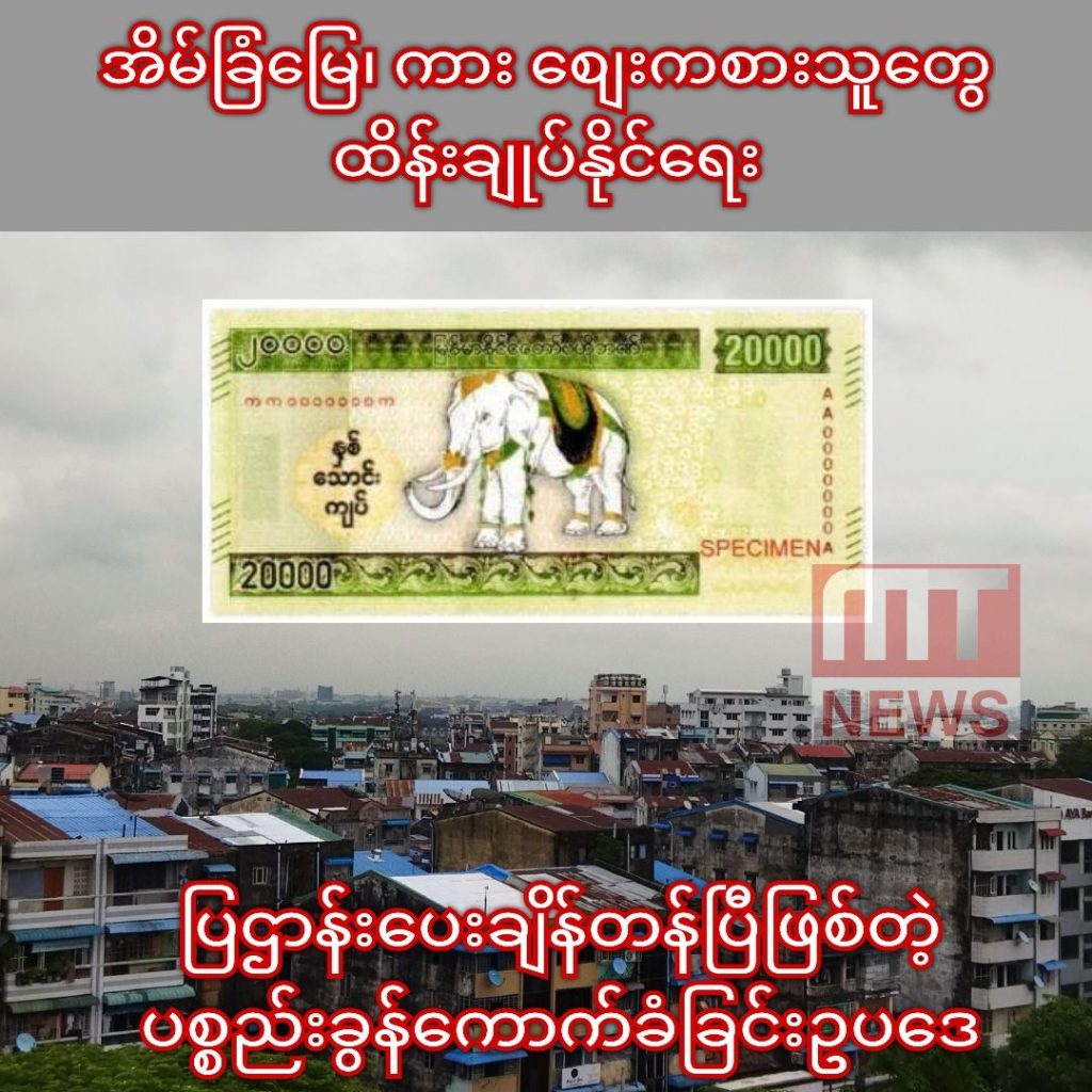 ဒီနေရာမှာ လက်ရှိအခြေအနေကတော့ ဥပဒေပြုနိုင်ခွင့်အာဏာအပါအဝင် အာဏာသုံးရပ်စလုံးဟာ ဖွဲ့စည်းပုံအခြေခံဥပဒေအရ တပ်မတော်ကာကွယ်ရေးဦးစီးချုပ်လက်ထဲမှာ ရှိနေတာပါ။ အခြားသောအချက်အနေနဲ့လည်း ၂၀၂၂ ဇူလိုင်လောက်ကစပြီး အထိန်းအကွပ်မဲ့တဲ့မြေစျေးဟာ ငါးဆမက တက်လာတဲ့အခြေအနေဖြစ်လာနေလို့ ပြည်သူကြားမှာ ဝယ်ယူသုံးစွဲနိုင်စွမ်းကလည်း ကျဆင်းနေပါပြီ။ ဒီအခြေအနေမျိုးမှာ ကျပ် ၂၀၀၀၀ တန်ငွေစက္ကူကလည်း ထုတ်ဝေဦးမဲ့ဂယက်ရိုက်လာပြီမို့လို့ အိမ်ခြံမြေကားစျေး လက်ရှိထက် ပိုဖောင်းပွမသွားအောင်၊ လူထုကြားမှာ အကြောက်တရားနဲ့ ဂယက်ရိုက်မကုန်အောင်၊ ငွေဖောင်းပွမှုအဆမတန်ဆိုးရွားမသွားအောင်၊ မြေစျေးကစားသူတွေ ထိန်းချုပ်နိုင်ပြီး ရှိသင့်တဲ့စျေးတန်းတစ်ခုမှာ ထိန်းထားနိုင်အောင်လို့ ရွှေနဲ့ ဒေါ်လာလိုပဲ အိမ်ခြံမြေနဲ့ ကားကို ထိန်းဖို့အချိန် သင့်နေပါပြီလို့ အကြံပြုရင်း…..။