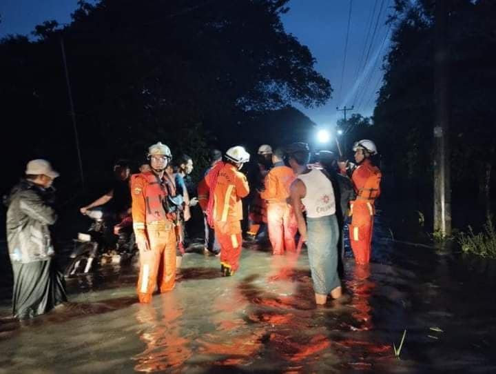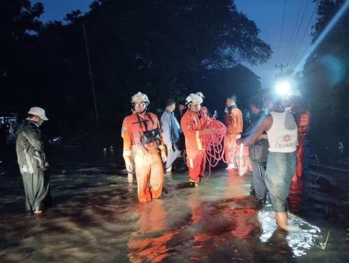 ရေအများဆုံး ဝင်ရောက်နေတဲ့ ရပ်ကွက်က ဖလုံဘူတာရပ်ကွက်လို့ သိရပြီး အုပ်ချုပ်ရေးအဖွဲ့ဝင်တွေ လူမှုရေးအသင်းအဖွဲ့ဝင်တွေနဲ့ မီးသတ်တပ်ဖွဲ့ဝင်တွေ ပူးပေါင်းပြီးကယ်ဆယ်ရေးလုပ်ငန်းတွေဆက်လက်ဆောင်ရွက်နေသလို အကူအညီလိုအပ်နေတဲ့ ပြည်သူတွေကို ကျွန်းတောကြီးဘုန်းတော်ကြီးကျောင်းကို ရွှေ့ပြောင်းပေးထားတယ်လို့လည်း သိရပါတယ်။