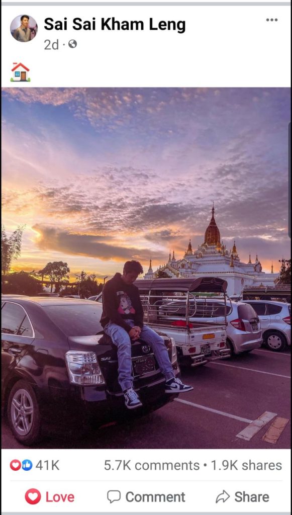 တေးရေး တေးဆို စိုင်းစိုင်းခမ်းလှိုင်က မကြာခင်ရက်ပိုင်းက တောင်ကြီးမြို့က စူဠာမုဏိဘုရားကို သွားရောက်ဖူးမြှော်ခဲ့တာနဲ့ အမှတ်တရအနေနဲ့ ကားပေါ်မှာထိုင်နေတဲ့ ပုံလေးရိုက်ကူးပြီး Facebook ပေါ် တင်လိုက်တာလည်းဖြစ်ပါတယ်။