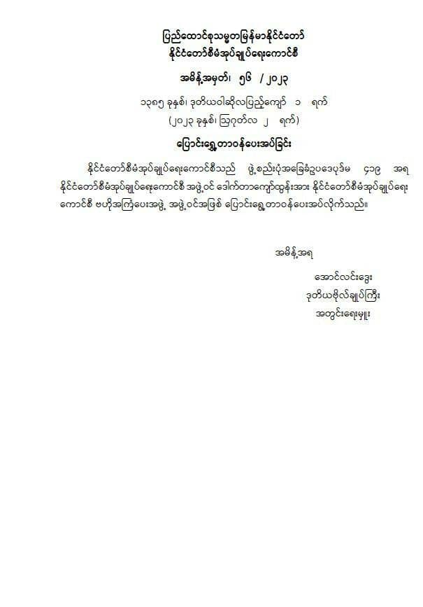 နိုင်ငံတော်စီမံအုပ်ချုပ်ရေးကောင်စီအား ပြင်ဆင်ဖွဲ့စည်းလိုက်ကြောင်း ယနေ့ ဩဂုတ် ၂ ရက်တွင် သတင်းထုတ်ပြန်သည်။