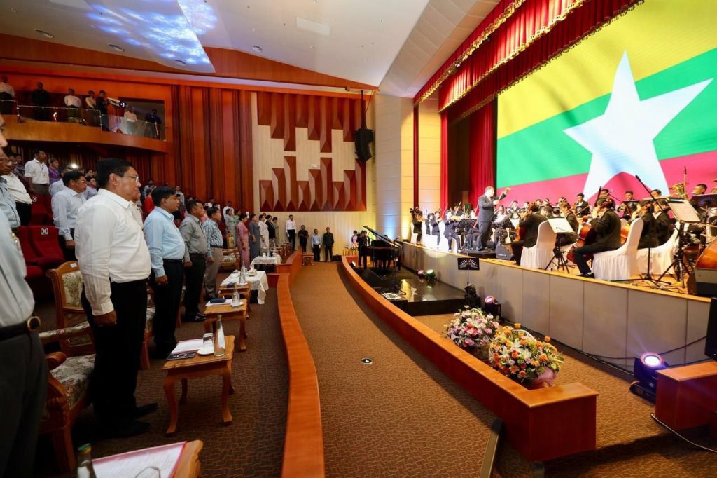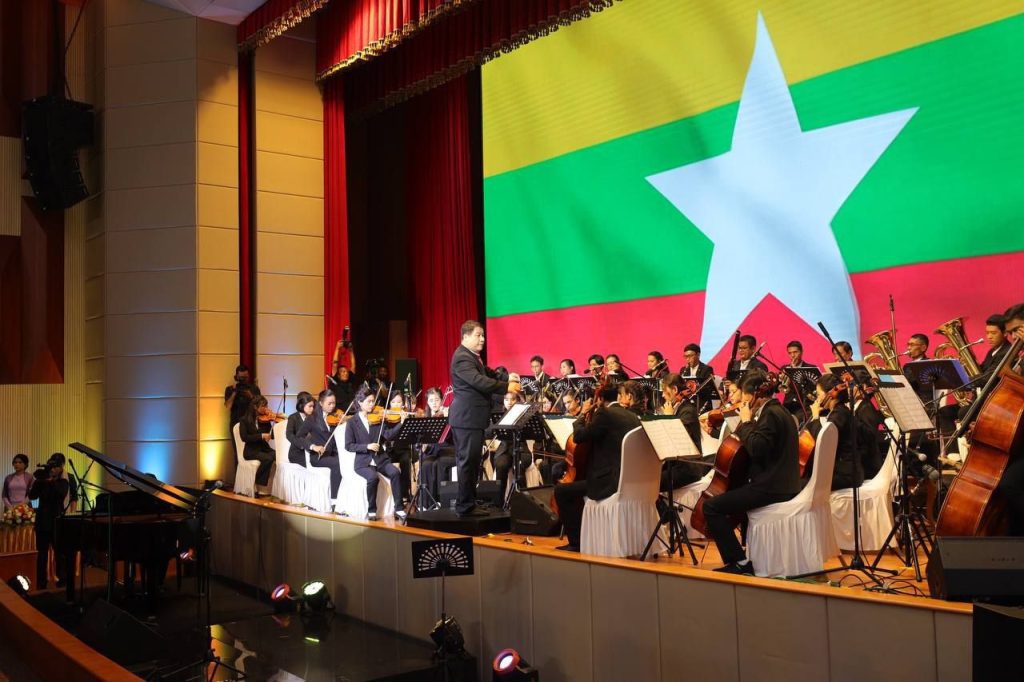 နိုင်ငံတော်သံစုံတီးဝိုင်းနှင့်အတူ တွဲဖက်၍ မြန်မာ့အသံနှင့်ရုပ်မြင်သံကြားမှ တေးသံရှင်များ၊ နိုင်ငံကျော် ရုပ်ရှင်နှင့် ဂီတအနုပညာရှင်များက မြန်မာသံစဉ်များ၊ ခေတ်ပေါ်သံစဉ်များနှင့် နိုင်ငံတကာ ကမ္ဘာကျော်တေးသီချင်းများဖြင့် ဖျော်ဖြေတင်ဆက်ကြရာ နိုင်ငံတော်သံစုံတီးဝိုင်းမှ နိုင်ငံတော်သီချင်းကို တီးမှုတ်ရာ နိုင်ငံတော်စီမံအုပ်ချုပ်ရေးကောင်စီဥက္ကဋ္ဌ နိုင်ငံတော်ဝန်ကြီးချုပ်နှင့် ဇနီး၊ တက်ရောက်လာကြသူများက ကြည့်ရှုအားပေးခဲ့ကြသည်။
