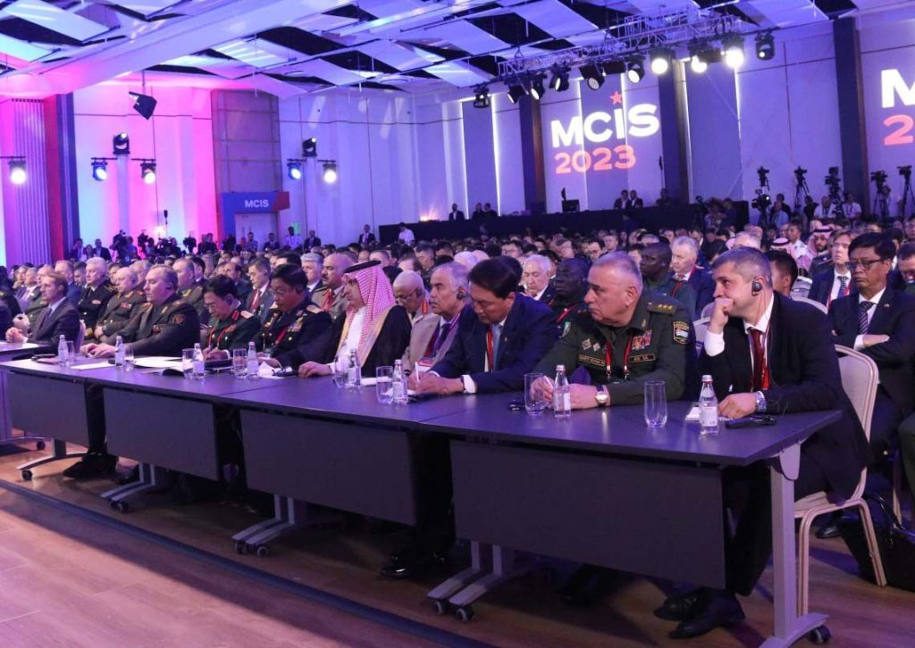 (၁၁) ကြိမ်မြောက် နိုင်ငံတကာလုံခြုံရေးညီလာခံ (MCIS-2023) ကို ရုရှားနိုင်ငံ၊ မော်စကိုမြို့ရှိ ရုရှားတပ်မတော်မျိုးချစ်ပန်းခြံတွင် ဩဂုတ်လ ၁၅ ရက်က ကျင်းပပြုလုပ်ခဲ့ရာ နိုင်ငံတော်စီမံအုပ်ချုပ်ရေးကောင်စီ (SAC) ဥက္ကဋ္ဌ ဗိုလ်ချုပ်မှူးကြီးမင်အောင်လှိုင်က Video Messag ပေးပို့၍တက်ရောက်ခဲ့သည်။