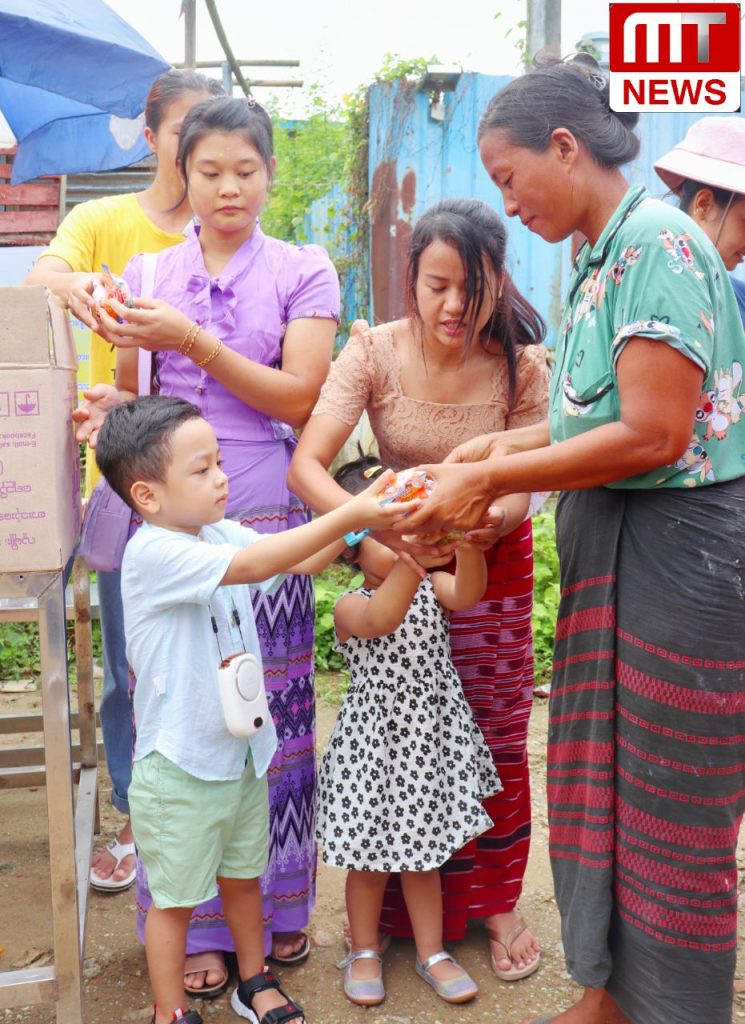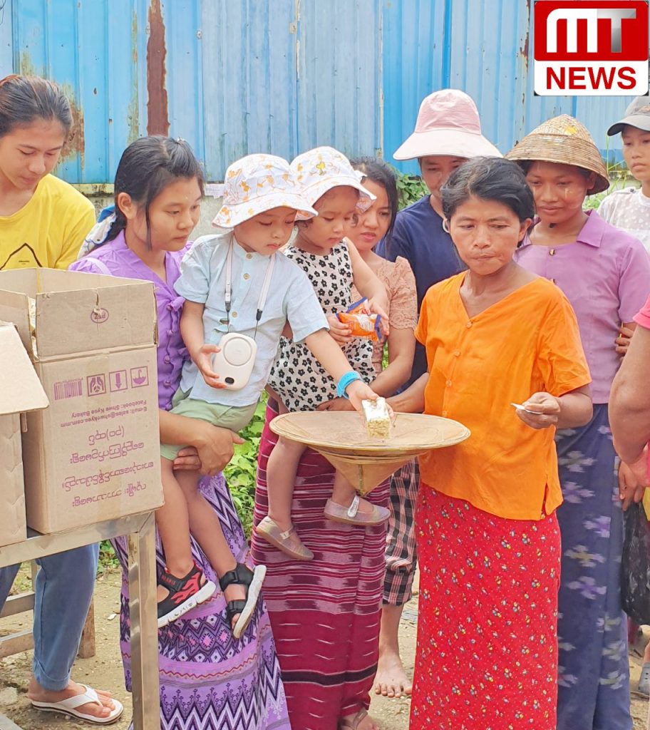 အဆိုပါ အလှူကို ဇနီးဖြစ်သူ နန်းမြတ်ဖြိုးသင်းနဲ့ သားဂျက်ဂျက်၊ သမီးဂျူးဂျူးတို့က အိမ်ထောင်စု ၁၅၀ အတွက် ဆန်၊ မေသဇင်မင်း ပဲဆီသန့် ၊ ရွှေကျီးမုန့်က တစ်အိမ်ထောင်ကို ကျပ် ၂၀၀၀ ဖိုးနှုန်း၊ ငွေကြေးတချို့ အပါအဝင် စုစုပေါင်း ကျပ် သိန်း ၂၀ ဖိုးခန့် လှူဒါန်းခဲ့တာလည်း ဖြစ်ပါတယ်။