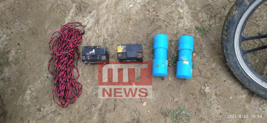 ၎င်းတို့စီးလာသော ဆိုင်ကယ်တူးဘောက်အတွင်း ဖွင့်လှစ်စစ်ဆေးခဲ့ရာတွင်လည်း PVC ပိုက်ဖြင့် ပြုလုပ်ထားသော အရှည် ၆ လက်မခန့်ရှိ လက်လုပ်မိုင်း ၂ လုံး၊ ဝါယာကြိုး ၂၅ ပေခန့် ၁ ခွေ၊ ဆိုင်ကယ်ဘတ္ထရီအိုး ၂ လုံးနှင့် ဆိုင်ကယ် ၂ စီးတို့အား သိမ်းဆည်းရရှိခဲ့ကြောင်း သိရသည်။