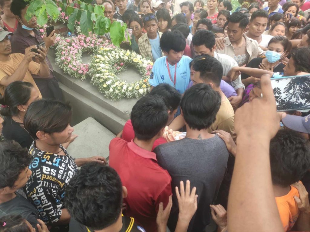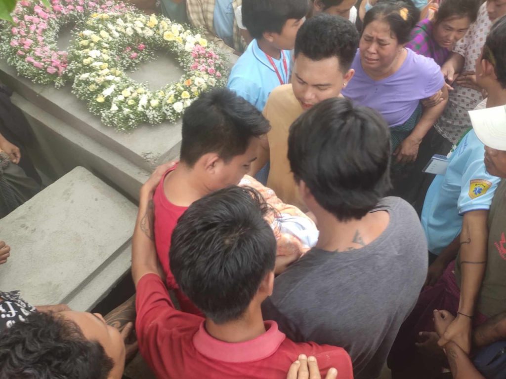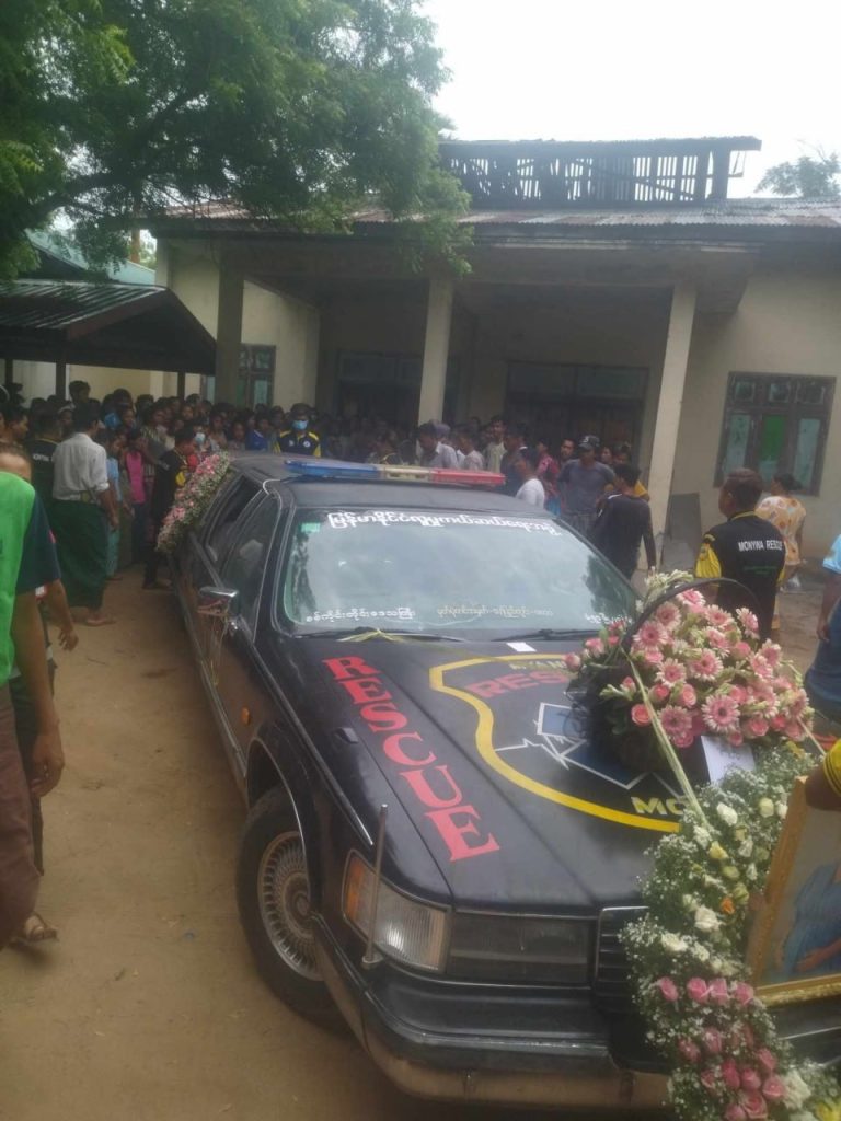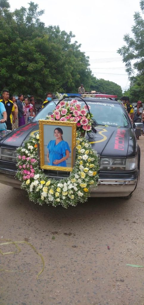 မွေးဖွားရန် ရက်ပိုင်းအလိုတွင် PDF ဓားပြများ၏ ပစ်ခတ်မှုကြောင့် ကွယ်လွန်ခဲ့ရရှာသူ ကိုယ်ဝန်ဆောင် အမျိုးသမီးငယ်နှင့် သားငယ်ကို ဩဂုတ်လ ၁၂ ရက်တွင် ဂူသွင်းသင်္ဂြိုလ်ခဲ့သည်။ ဩဂုတ်လ ၁၀ ရက်တွင် PDF ဓားပြများ၏ ပစ်ခတ်မှုကြောင့် အသက် ၂၅ နှစ်အရွယ် အဆိုပါ အမျိုးသမီးငယ် မအေးငြိမ်းသူ သေဆုံးသွားရခြင်း ဖြစ်ကာ ကလေးငယ်ကို ခွဲထုတ်ကာ ကယ်ဆယ်ရန် ကြိုးပမ်းသော်လည်း မိခင်ရော ကလေးပါ သေဆုံးသွားရခြင်း ဖြစ်သည်။ ဩဂုတ်လ ၁၂ ရက် မွန်းလွဲ ၁ နာရီ အချိန်တွင် မုံရွာမြို့ရှိ မြို့မ သုဿာန်သို့ ပို့ဆောင်ကာ ဂူသွင်းသင်္ဂြိုလ်ခဲ့ပြီး ကရုဏာသက်၍ လာရောက်ပို့ဆောင်ကြသူများဖြင့် စည်ကားခဲ့ကြောင်းလည်း ဒေသခံများထံက သိရသည်။