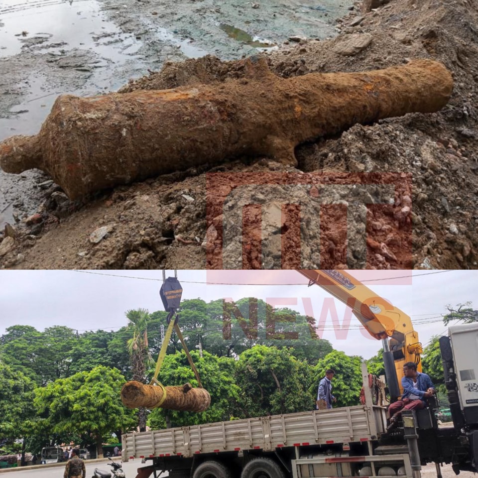 မန္တလေးမြို့ ကမ်းနားလမ်းတွင် ယနေ့မနက်ပိုင်းက မြို့နယ်လမ်းတံတားအဖွဲ့မှ လမ်းဘေးပလက်ဖောင်း ပြုလုပ်နေစဥ် ပိဿာ ၂၀၀ ခန့်ရှိသည့် ရှေးဟောင်း သံအမြောက်တစ်လက် တွေ့ရှိခဲ့ကြောင်း မြို့နယ်လမ်းတံတားဦးစီးမှူး ဦးဇာနေကြည်ဝင်း ထံမှ သိရသည်။