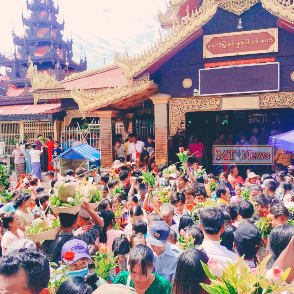 ” ဒီနေ့က ဝါခေါင်လဆန်း ၁၁ ရက်နေ့ဖြစ်တဲ့အတွက် အရှင်မင်းနှစ်ပါးရဲ့ ချိုးရေတော်သုံးပွဲကျင်းပတဲ့နေ့ဖြစ်ပါတယ်။ နှစ်စဉ်နှစ်တိုင်း ချိုးရေတော်သုံးတဲ့နေ့မှာ ပွဲက အစည်ကားဆုံးနေ့ပဲ။ ဒီနှစ်ကတော့ မင်းနှစ်ပါးကို မနက် ၈ နာရီထဲက ချိုးရေတော်သုံးခဲ့တယ်။ အရင်တုန်းကတော့ နေ့လည် ၁၁ လောက်မှလုပ်တာ။ ဒီနှစ်ကစောတယ်။ ဆိုင်းဝိုင်းတွေနဲ့ဆိုလည်း ညနေ ၄ နာရီမှ စချော့ကြတာ။ အခုနှစ်တော့ မနက် ၁၀ နာရီထဲက စချော့နေတာပါ။ နောက်နေ့တွေမှာလည်း အရင်က ကျင်းပတဲ့ဓလေ့အတိုင်း ဆက်လက်ကျင်းပသွားမှာပါ”ဟု ပွဲတော်ကျင်းပရေးကော်မတီမှ တာဝန်ရှိသူတစ်ဦးက MT News သတင်းဌာန၏ မေးမြန်းမှုကို ဖြေကြားသည်။