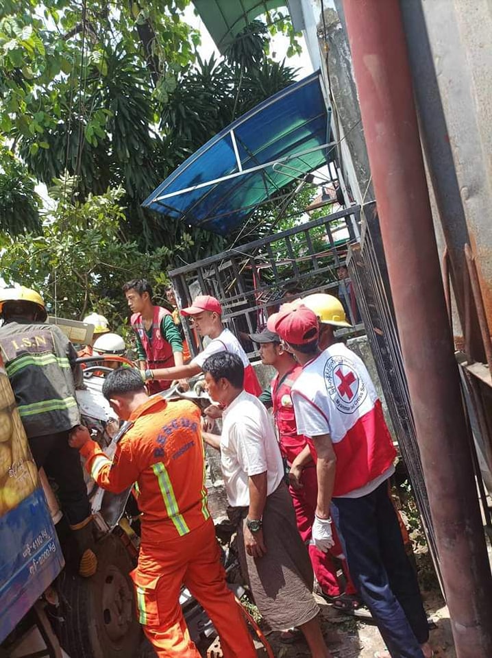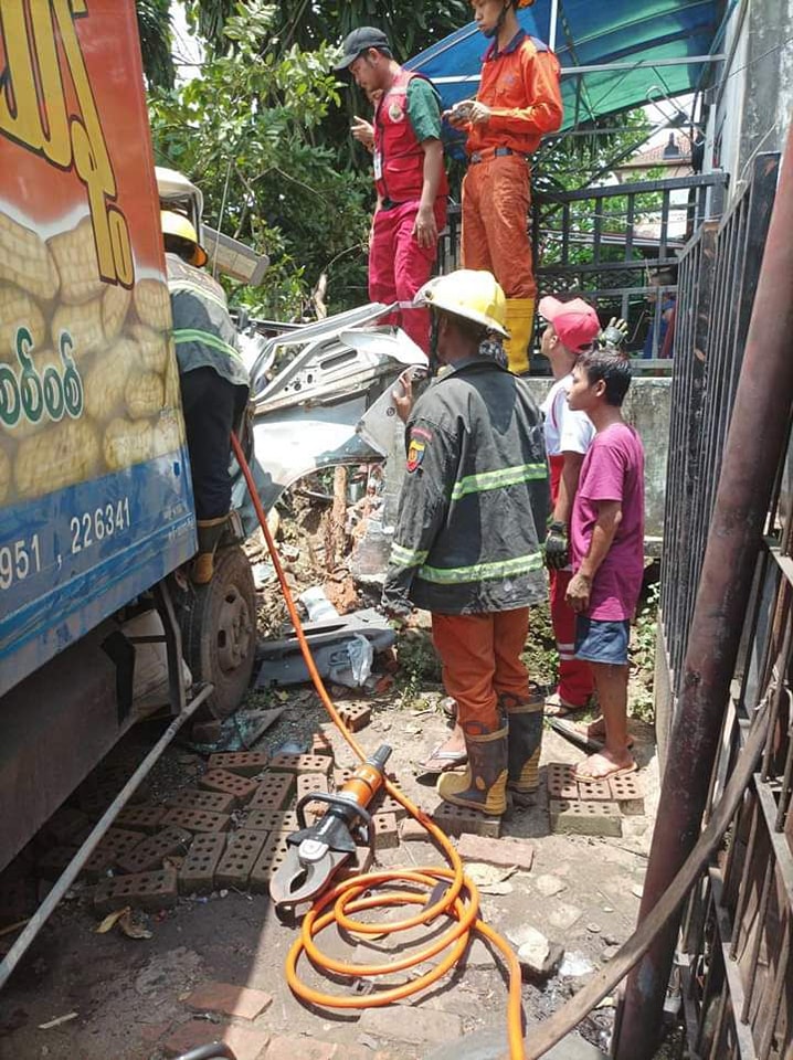 ကားခေါင်းခန်းမှာ ညပ်နေတဲ့ ယာဥ်မောင်းကို ဆယ့်ငါးမိနစ်အတွင်း အသက်ရှင်လျှက် ကယ်ထုတ်နိုင်ခဲ့ကာ အရန်မီးသတ်တပ်ရင်းရုံး လူနာတင်ယာဥ်နဲ့ အင်းစိန်ဆေးရုံကို ပို့ဆောင်ပေးခဲ့တယ်လို့ သိရပါတယ်။