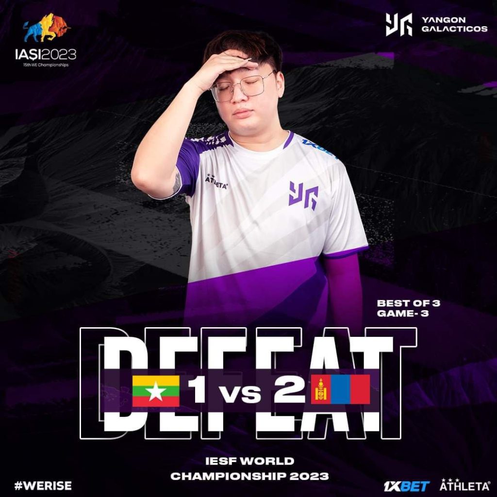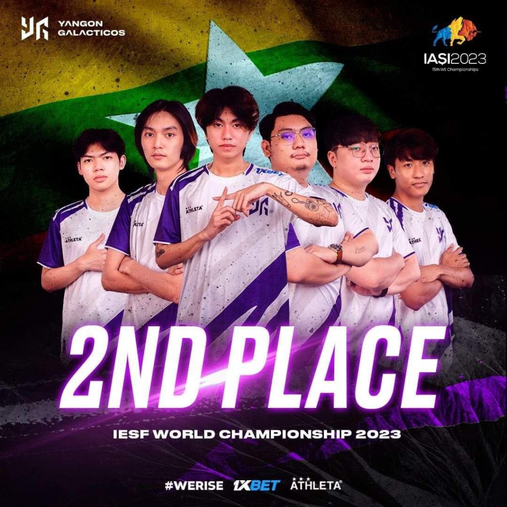 Romania နိုင်ငံမှာ ကျင်းပပြုလုပ်တဲ့ IESF World Championship 2023 Dota 2 ပွဲစဥ်ယှဉ်ပြိုင်ကစားပွဲတွေမှာ မြန်မာနိုင်ငံကိုယ်စားပြုအသင်းအဖြစ်ဝင်ရောက်ယှဥ်ပြိုင်ခဲ့တဲ့ Team Myanmar (Yangon Galacticos) အသင်းဟာ ပြိုင်ဘက်မွန်ဂိုလီးယားအသင်းကို စက်တင်ဘာ ၃ ရက် ညက ကျင်းပတဲ့ Grand Final မှာ ရှုံးနိမ့်ခဲ့တာကြောင့် ချန်ပီယံဆုနဲ့လွဲချော်ပြီး ဒုတိယသာ ရရှိခဲ့ပါတယ်။