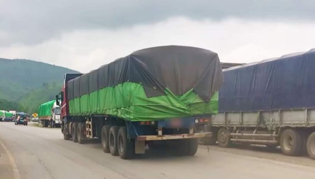 ထိုင်းနှင့် တရုတ်နယ်စပ်မှ သွင်းကုန်ပစ္စည်းများ တင်ဆောင်လာသည့် ကုန်ကားများကို တွေ့ရစဉ်