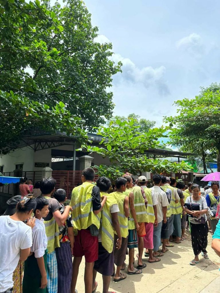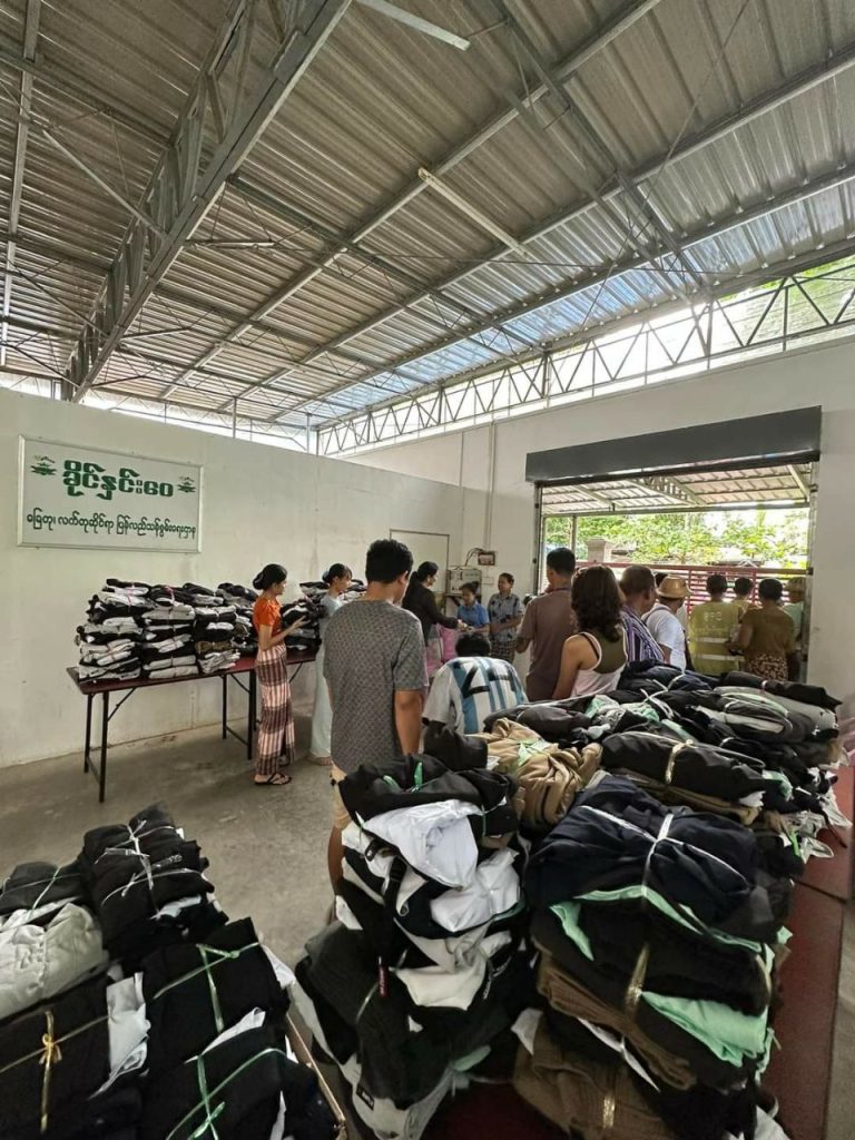 “ကျွန်မတို့ သီတင်းကျွတ်ကာလလည်း နီးလာပြီဆိုတော့ တကယ်လိုအပ်တဲ့ မိသားစုဝင်တွေကို အဝတ်အထည်တွေ လှူဖြစ်တာပါ။ ကျွန်မတို့ဆီကို လာလှူထားတဲ့ အထည်အသစ်တွေ တချို့လည်းပါသလို ထပ်ဝယ်ပြီးတော့ လှူလိုက်တာပါ။ အဝတ်အထည်တွေက အမျိုးသမီးအဝတ်တို့ အမျိုးသားအဝတ်ရယ်လို့ ခွဲမထားပါဘူး အကုန်ထည့်လှူလိုက်တာပါ။ ခုနှစ်ရက် သားသမီးများ ကောင်းမှုအဖြစ် လှူဒါန်းဖြစ်ပါတာပါရှင့် ”လို့ သရုပ်ဆောင် ခိုင်နှင်းဝေက ပြောပါတယ်။