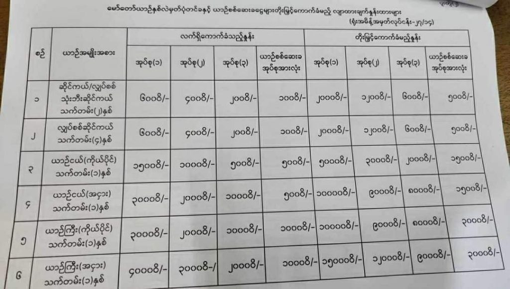 ယာဥ်မှတ်ပုံတင်ဆိုင်ရာ အခငွေများကို ယခင်နှုန်းထားထက် သုံးဆခန့် တိုးမြှင့်ကောက်ခံမည်ဆိုသော သတင်းနှင့် အကြံပြုချက်တောင်းခံစာ ထွက်ပေါ်နေခြင်းနှင့် ပတ်သက်၍ MT News သတင်းဌာနက လိုက်လံစုံစမ်းမေးမြန်းရာတွင် အထက်ပါအတိုင်း သိရှိရခြင်းဖြစ်သည်။