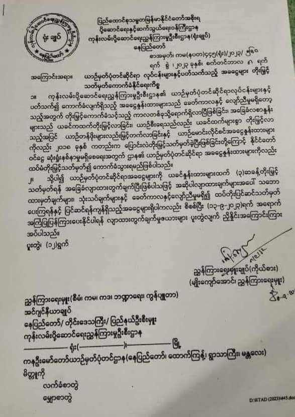 ပုံစာ။ လူမှုကွန်ရက်တွင် ပျံ့နှံခဲ့သော ယာဥ်မှတ်ပုံတင်ကြေးနှင့် ယာဥ်စစ်ခများတိုးမြှင့်မည့် လျာထားချက်နှင့် မြင်သာကညနရုံး ယနေ့မြင်ကွင်း။