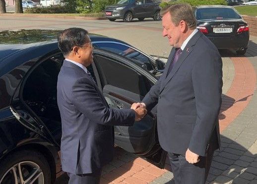 မြန်မာနိုင်ငံခြားရေးဝန်ကြီး ဦးသန်းဆွေသည် စက်တင်ဘာ ၁၄ ရက်နေ့တွင် ရုရှားနိုင်ငံခြားရေးဝန်ကြီး ဆာဂေးလာရောဗ့်နှင့် တွေ့ဆုံဆွေးနွေးခဲ့ပြီးနောက် စက်တင်ဘာ ၁၅ ရက်နေ့တွင် ဘီလာရုစ့်နိုင်ငံခြားရေးဝန်ကြီးဌာနရုံးတွင် ဝန်ကြီး Sergei Aleinik နှင့် တွေ့ဆုံဆွေးနွေးခဲ့ကြောင်း သိရသည်။