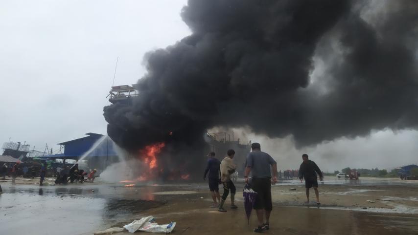 မြိတ်မြို့နယ်ရှိ ရေပေါ်လွန်းကျင်းဧရိယာတွင် လွန်းတင်ထားသည့် သင်္ဘောတစ်စီး မီးလောင်မှု ဖြစ်ပွားခဲ့ကြောင်း အခင်း ဖြစ်နေရာသို့ သွားရောက်ကူညီဆောင်ရွက်ပေးခဲ့သည့် မြို့ပြအနာဂတ်လူမှုကူညီရေးအသင်းမှ တာဝန်ရှိသူတစ်ဦးက MT News သတင်းဌာနသို့ ပြောသည်။