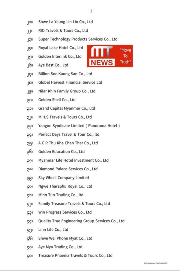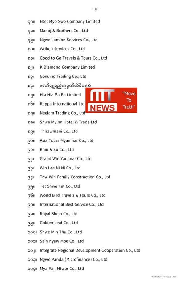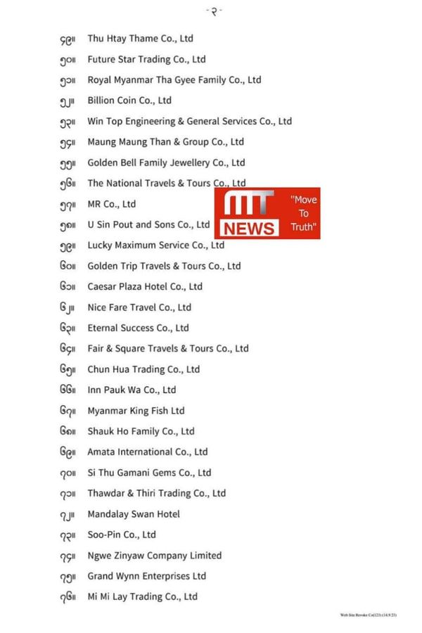မြန်မာနိုင်ငံတော်ဗဟိုဘဏ်က ခွင့်ပြုထုတ်ပေးထားသည့် နိုင်ငံခြားသုံးငွေများ ဝယ်ယူရောင်းချ လဲလှယ်ပေးခွင့်လိုင်စင်ရ ကုမ္ပဏီ ၁၂၃ ခုတို့သည် ဗဟိုဘဏ်က ထုတ်ပြန်ထားသော အမိန့်နှင့် ညွှန်ကြားချက်များကို လိုက်နာမှုမရှိသဖြင့် နိုင်ငံခြားငွေများ ဝယ်ယူရောင်းချလဲလှယ်ခွင့်လိုင်စင် (Money Changer License) အား အမှုဆောင်ကော်မတီ အစည်းအဝေးဆုံးဖြတ်ချက်အရ စက်တင်ဘာလ ၁၉ ရက်မှစ၍ ရုပ်သိမ်းလိုက်သည်။