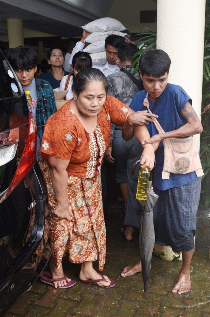 “ဒါဟာ ရန်ကုန်တိုင်းအတွင်း တတိယအကြိမ် လှူဒါန်းမှုလို့ဆိုရမှာပါ။ ပထမအကြိမ်က (၂၆-၈-၂၀၂၃) နေ့ ဖောင်ကြီးမှာ မသန်စွမ်း (၂၆၈) ဦးကို တစ်ဦးဆန်(၆)ပြည်၊ ဆီ(၅၀)ကျပ်သားနှုန်း လှူဒါန်းခဲ့ပြီး၊ ဒုတိယအကြိမ် (၃-၉-၂၀၂၃)နေ့ မှော်ဘီ၊ ဝါးနက်ချောင်းရွာမှာ (၂၃၁) ဦးကို ဆန်(၃)ပြည်၊ ဆီ (၂၅) ကျပ်သားနှုန်း လှူဒါန်းခဲ့ပြီးဖြစ်ပါတယ်။ လောက်ငှပြည့်စုံတဲ့ကူညီမှုလို့ မဆိုနိုင်ပေမဲ့ အကူအညီလိုအပ်မဲ့ ညီအစ်ကိုမောင်နှမတွေ စားသောက်ရေးအဆင်ပြေစေဖို့ ကွက်လပ်ငယ်တစ်ခုကို တတ်စွမ်းသမျှ ဝင်ရောက်ဖြည့်ဆည်းပေးတယ်လို့ ဆိုရမှာပါခင်ဗျာ။ ၂၀၁၉ ကြားဖြတ်သန်းခေါင်စာရင်းအရ နိုင်ငံတစ်ဝှမ်း မသန်သော်လည်း စွမ်းကြတဲ့ ကျွန်တော်တို့ နိုင်ငံသားတွေ ၅ ဒသမ ၉ သန်းခန့်ရှိပြီး ရန်ကုန်တိုင်းတစ်ခုတည်းမှာပဲ လူဦးရေရဲ့ ၁၂ ဒသမ ၄ ရာခိုင်နှုန်း၊ ဦးရေအရဆိုရင် ၈၉၆,၂၄၂ ဦး ရှိတယ်လို့ လေ့လာရရှိပါတယ်။ နိုင်ငံတော်ဟာ (၂၀၂၂ – ၂၀၂၇) ကာလ မသန်စွမ်းသူများ၏ အခွင့်အရေးများဆိုင်ရာ မဟာဗျူဟာ (၅)နှစ်စီမံကိန်းကို ရေးဆွဲထားရှိပြီး နေပြည်တော်၊ ရန်ကုန် တိုင်း၊ ကရင်ပြည်နယ်နဲ့ ရှမ်းပြည်(တောင်ပိုင်း)စတဲ့ နယ်မြေ(၄)ခုရဲ့ မြို့နယ်အချို့မှာ ကနဦးစီမံကိန်းအဖြစ် ပညာရေး၊ ကျန်း မာရေး၊ အလုပ်အကိုင်၊ သဘာဝဘေးနဲ့ အခြားအရေးပေါ်အခြေအနေများ၊ အလွယ်တကူ လက်လှမ်းမီ ရယူအသုံးပြုနိုင်ဖို့စတဲ့ ဦးစားပေးကဏ္ဍ(၆)ခုကို အကောင်အထည်ဖော် နေပါတယ်။ ကျွန်တော်တို့လည်း တစ်ထောင့်တစ်နေရာက တတ်စွမ်းသမျှ ပါဝင်ဖို့ တာဝန်ရှိတယ်လို့ အလေးအနက်ခံယူမိပါတယ်” လို့ ဦးခင်ရီက ဆက်ပြောပါတယ်။