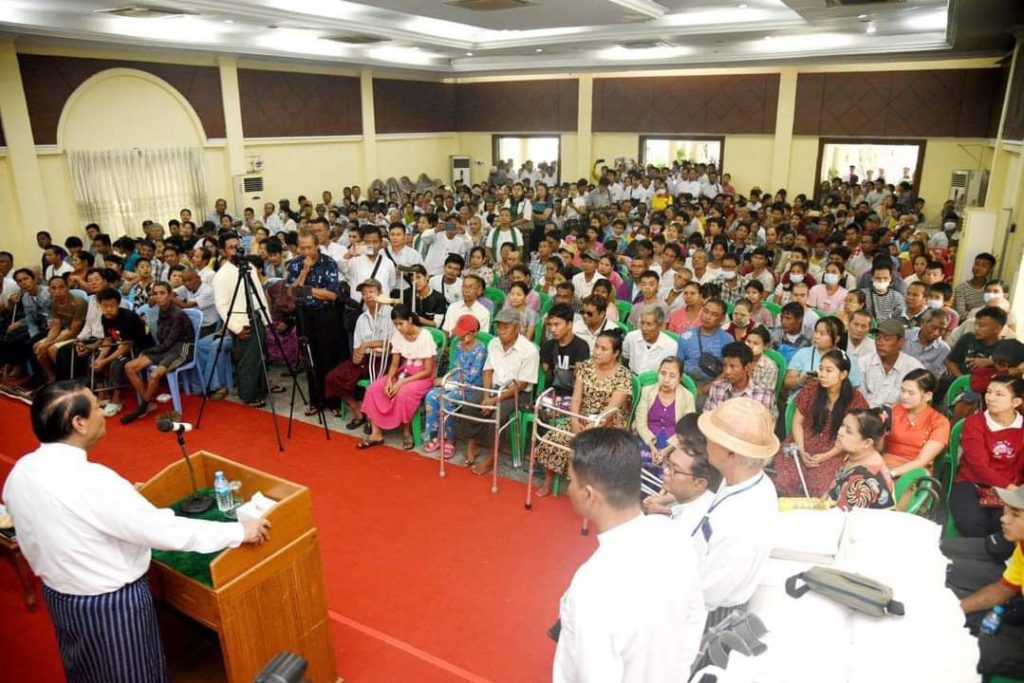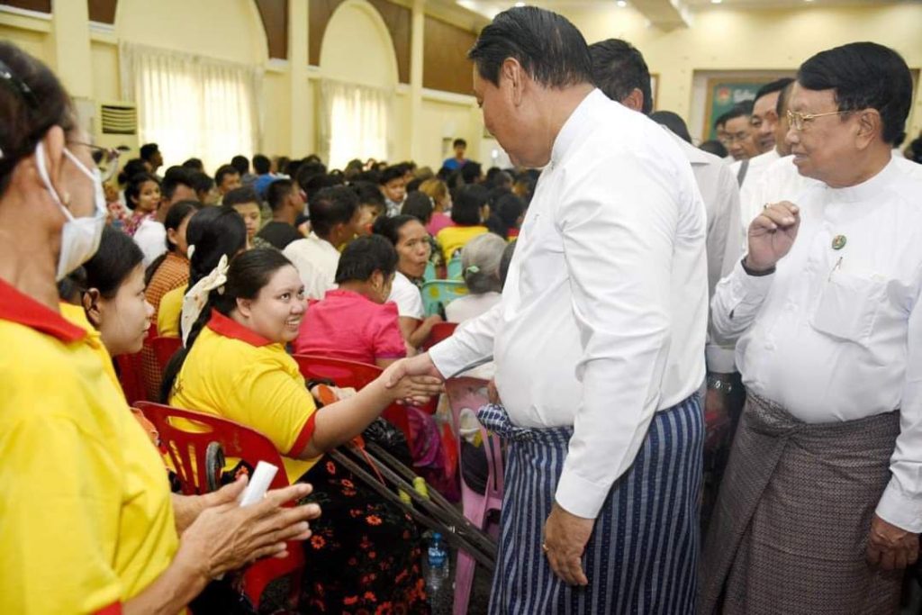 ဒီပြောကြားမှုကိုတော့ စက်တင်ဘာ ၁၉ ရက်မနက်ပိုင်းက ရန်ကုန်တိုင်း၊ လှိုင်သာယာမြို့နယ်၊ ကနောင်ခန်းမမှာ လှိုင်သာယာ (အရှေ့/အနာက်)၊ အင်းစိန်၊ ရွှေပြည်သာ၊ မင်္ဂလာဒုံမြို့နယ်တွေက မသန်စွမ်းတွေ၊ လူမှုကူညီထောက်ပံ့ရေးအဖွဲ့အစည်းတွေအပါအဝင် ၁၀၃၆ ဦးကို တစ်ဦး ဆန်(၃)ပြည်၊ ဆီ(၃၀)ကျပ်သားနှုန်းနဲ့ လှူဒါန်းခဲ့တဲ့ အခမ်းအနားမှာပြောခဲ့တာပါ။