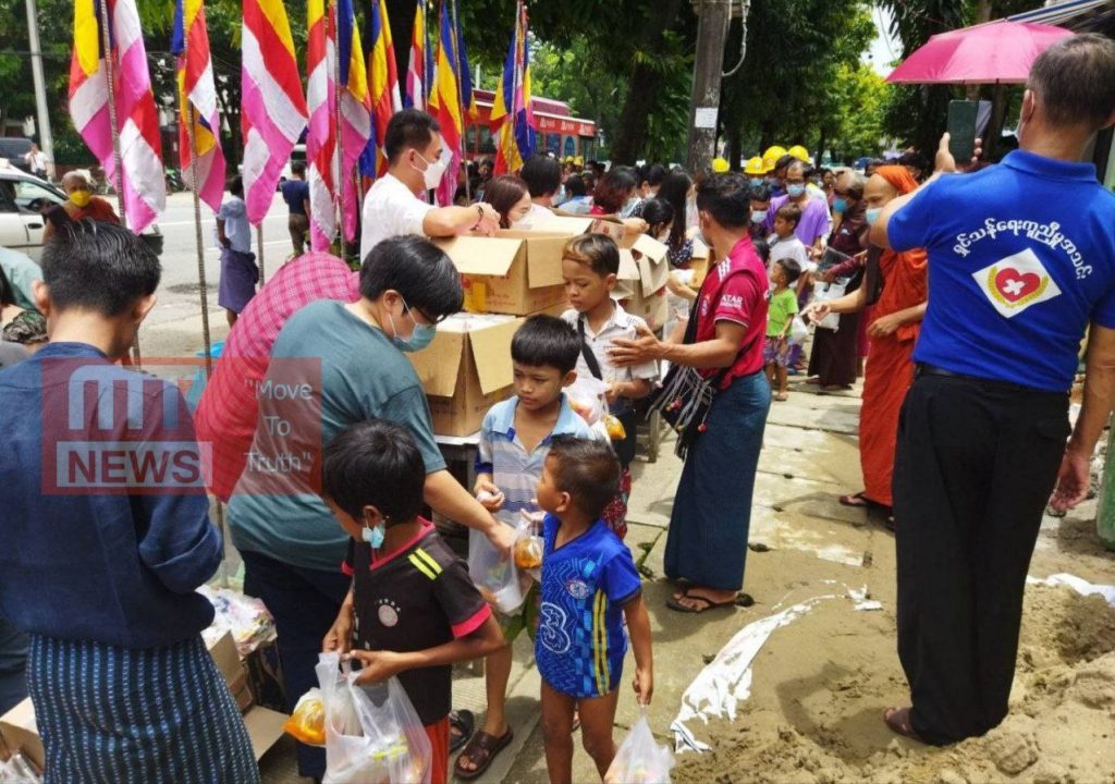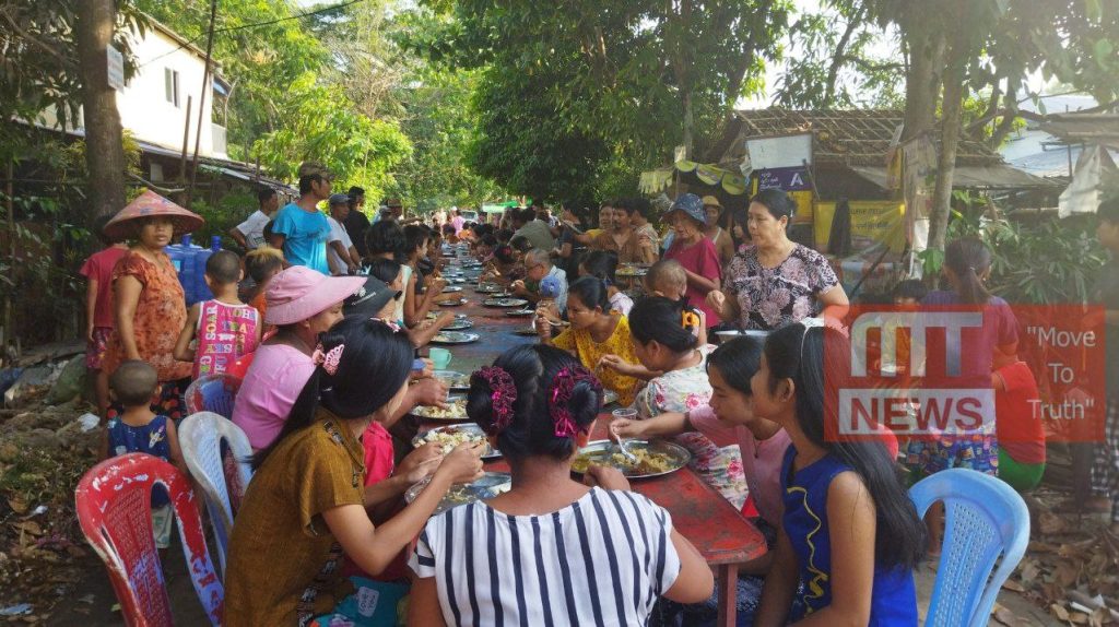 “ရပ်ကွက်ထဲ အိမ်တွေက ထမင်းပေးဘာပေးလည်း ရှိတယ်။ ဘုန်းကြီးကျောင်းကနေ ထမင်းသွားတောင်းလို့လည်း ရတယ်။ ရပ်ကွက်ထဲက ထမင်းဆိုင်ကနေ ငရုပ်သီးစိမ်းငပိဖျော် ၂၀၀ ဖိုး၊ တို့စရာအစုံ ၃၀၀ ဖိုး၊ ဟင်းက အသားတစ်မျိုးမျိုး ၁၀၀၀ ဖိုးဆို အတုံးတော့ သေးပေမယ့် ၃ တုံး ၄ တုံး ရပါတယ်။ အဓိက ကလေးတွေ စားရဖို့ပဲ ကိုယ်တွေက ဟင်းအနှစ်လေး ငပိဖျော်လေး လူးစားရင် ရပါတယ်” လို့ မမိုးက သူတို့စားဝတ်နေရေး ဖြေရှင်းရပုံကို ပြောပြပါတယ်။