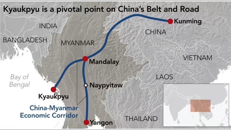 စီးပွားရေးစင်္ကြံ တွင်ပါဝင်သော ကျောက်ဖြူရေနက်ဆိပ်ကမ်းနှင့် အထူးစီးပွားရေးဇုန်သည် တရုတ်နိုင်ငံကို အိန္ဒိယသမုဒ္ဒရာသို့ ထွက်ပေါက်ပေးမည့် ဒေသတွင်းမဟာဗျူဟာကျသည့် စီမံကိန်းတစ်ခုလည်း ဖြစ်သည်။တရုတ်နိုင်ငံသည် ၂၀၁၃ ခုနှစ်တွင် ကမ္ဘာနိုင်ငံများကိုချိတ်ဆက်နိုင်မည့် BRI စီမံကိန်းကို အဆိုပြုလုပ်ဆောင်ခဲ့ပြီး နိုင်ငံ၊ အဖွဲ့စည်းပေါင်း ၁၅၀ကျော်ပါဝင်လျက်ရှိနေကာ အာရှ၊ ဥရောပ နှင့် အာဖရိကတို့ကိုချိတ်ဆက်မည့် စီမံကိန်းဖြစ်ကြောင်း သိရသည်။