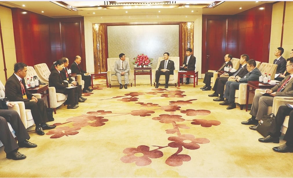 တရုတ်နိုင်ငံ ကျန်းစုပြည်နယ် လဲ့ယွင်းဂန် (Lianyun-gang) မြို့ Lianyung New City Hotel ၌ စက်တင်ဘာ ၂၁ ရက်က ကျင်းပသည့် ၂၀၂၃ ခုနှစ် ကမ္ဘာလုံးဆိုင်ရာ ပြည်သူ့လုံခြုံရေးပူးပေါင်းဆောင်ရွက်မှုဖိုရမ် (The 2023 Conference of Global Public Security Cooperation Forum) ဖွင့်ပွဲသို့ တက်ရောက်နေသည့် လူဝင်မှုကြီးကြပ်ရေးနှင့် ပြည်သူ့အင်အားဝန်ကြီးဌာန ပြည်ထောင်စုဝန်ကြီးနှင့် Mr. Wang Xiaohong တို့ဖွင့်ပွဲအခမ်းအနားအပြီးတွင် အဆိုပါဟိုတယ်ဧည့်ခန်းမ၌ တွေ့ဆုံကြဆွေးနွေးခဲ့ကြခြင်းဖြစ်သည်။