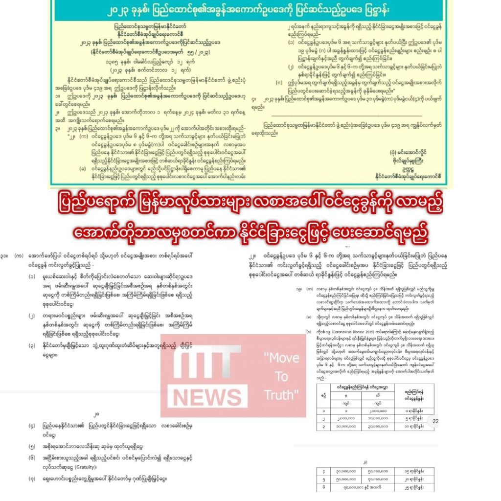 ◾ ပြည်ပနေနိုင်ငံသားများ၏ လစာအပေါ် ဝင်ငွေခွန်ကင်းလွတ်ခွင့်ပြုမှု ပယ်ဖျက်လိုက်ပြီး ပြည်ပရောက်လုပ်သားများ နိုင်ငံခြားငွေဖြင့် ဝင်ငွေခွန်ပေးဆောင်ရန် ပြင်ဆင်သတ်မှတ်