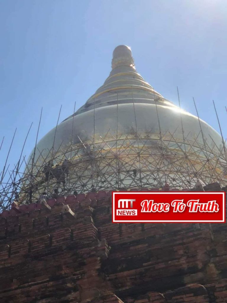 “ဂေါပက က ဘုရားရန်ပုံငွေနဲ့ပဲ ရွှေပြန်ကပ်တာပါ။ ဒရုန်းနဲ့ အနီးကပ်ရိုက်ကြည့်တာတော့ (မိုးကြိုးကြောင့် ဘုရားမှာ ထိခိုက်သွားတာ) မတွေ့ဘူး။ ငြိမ်းအပေါ်ထိ ရောက်သွားရင်တော့ ငြမ်းအပေါ်ကနေ ရွှေပေါ် မည်းသွားတဲ့ နေရာတွေကို ဓာတုဗေဒ ဌာနစိတ်ကနေ ခေါက်စစ်တာတို့ ဘာတို့ လုပ်မှာပေါ့။ အင်္ဂတေလွှာ ကျွမ်းသွားလား အသေးစိတ်စစ်မှာပါ” ဟု ဦးကျော်မျိုးဝင်းက ရှင်းပြသည်။