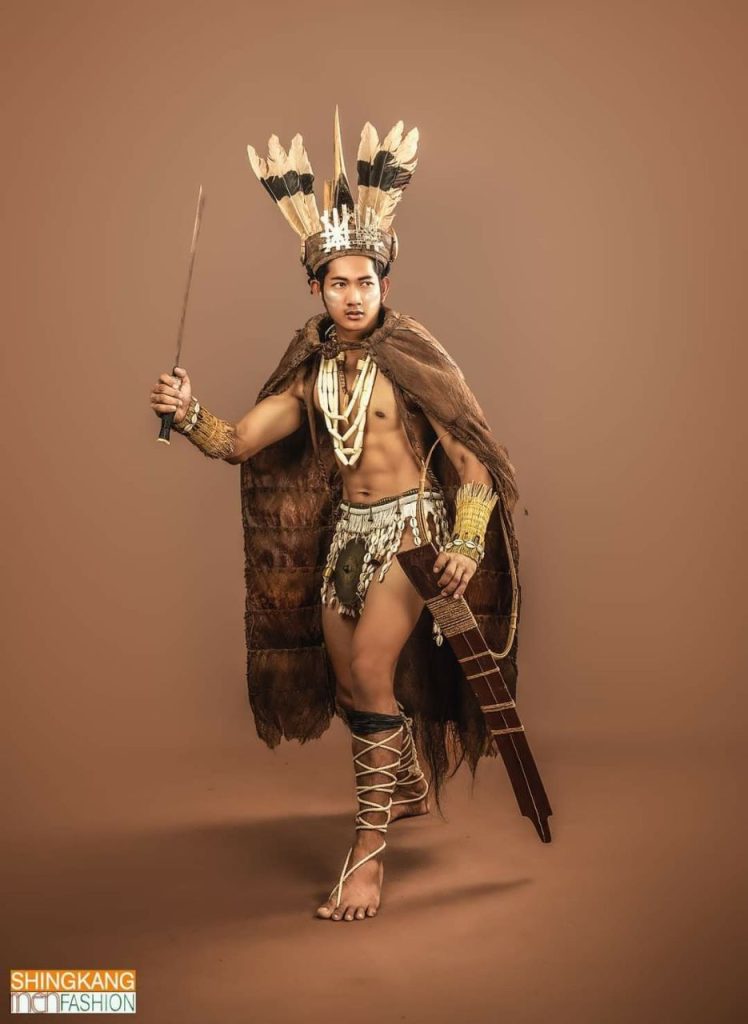 “National Costume ဆိုရင်လည်း နှစ်စုံတော့ ကြိုတင်ပြင်ဆင်ယူလာခဲ့တယ်။ ပထမဝတ်စုံအဆင်မပြေခဲ့ရင်ပေါ့။ ပထမဝတ်စုံကတော့ ခုချိန်ထိတော့ လေဆိပ်မှာ ဖြတ်သန်းခွင့်ရနေသေးတယ်။ Prince of Traditional လို့ ဒီဇိုင်နာက နာမည်ပေးထားတယ်။ အဓိက ချင်းလူမျိုး၊ နာဂလူမျိုး၊ ကချင်လူမျိုးတွေမှာ သူတို့ရဲ့ ခေတ်အလိုက် Pattern ကို အခြေခံထားတယ်။ တိုင်းရင်းသားတွေရဲ့ စည်းလုံးညီညွှတ်မှုရယ် ပြသဖို့အတွက် တီထွင်ဖန်တီးထားတဲ့ ဝတ်စုံလေးပါ”လို့ သူကဆက်ပြောပါတယ်။