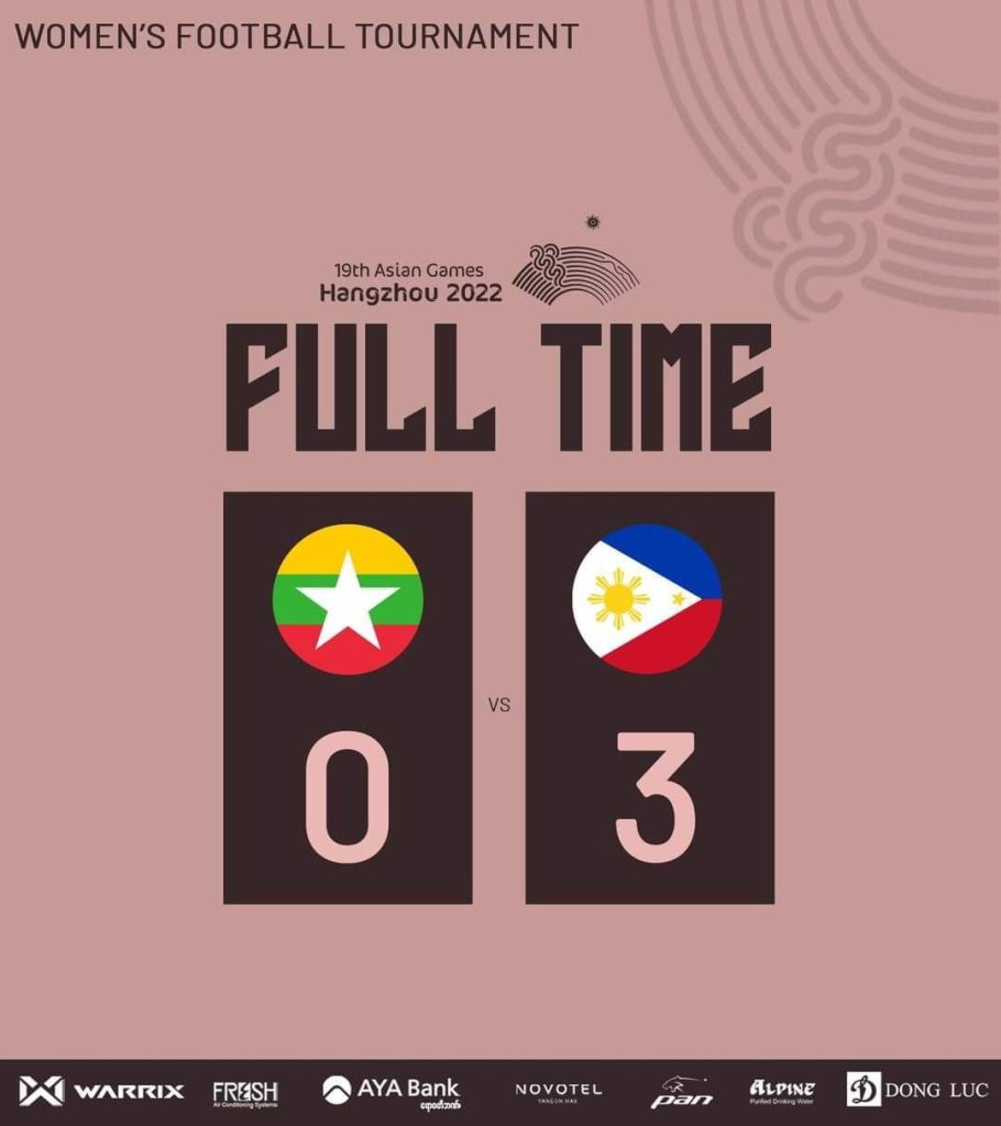 မြန်မာအမျိုးသမီးအသင်းကတော့ ဖိလစ်ပိုင်ကို ဂိုးပြတ်နိုင်မှ နောက်တစ်ဆင့်တက်နိုင်မှာဖြစ်ပေမဲ့ ၃ ဂိုးပြတ်ရှုံးပြီးတော့ကို သံယောဇဥ်ဖြတ်လာခဲ့တာကြောင့် အကောင်းဆုံးအုပ်စုတတိယအဆင့်နဲ့ကို ၁၆ သင်းအဆင့်ဆီ မသွားနိုင်တော့ဘဲ အုပ်စုကပဲ လှည့်ပြန်ခဲ့ရတာပါ။