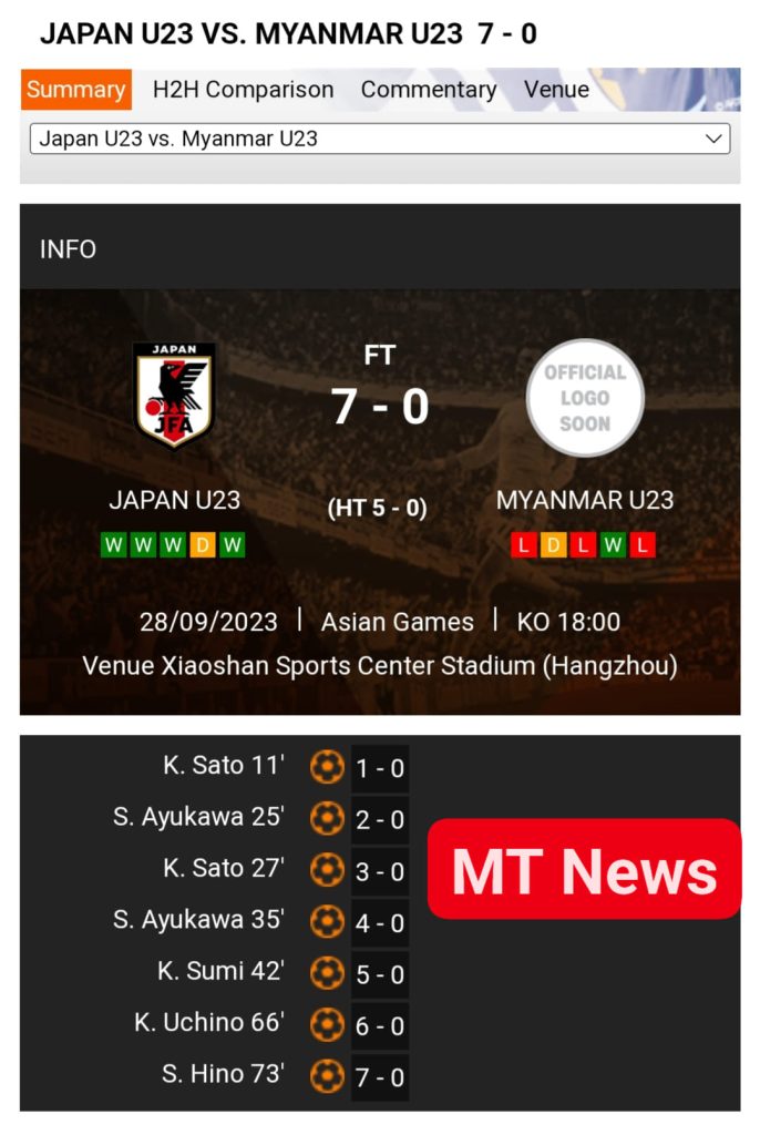 အာရှအားကစားပွဲတော် အမျိုးသားဘောလုံးပြိုင်ပွဲ ဒုတိယအဆင့်ကို အကောင်းဆုံးတတိယနေရာကနေ မြန်မာ ယူ ၂၄ အသင်း တက်ရောက်သွားခဲ့ပြီး ဂျပန်အသင်းနဲ့ တွေ့ဆုံရာမှာတော့ ၇ ဂိုး ဂိုးမရှိနဲ့ အရှက်တကွဲရှုံးနိမ့်ထွက်ခွာခဲ့ရပါတယ်။