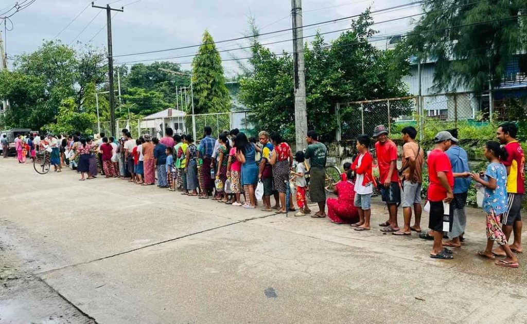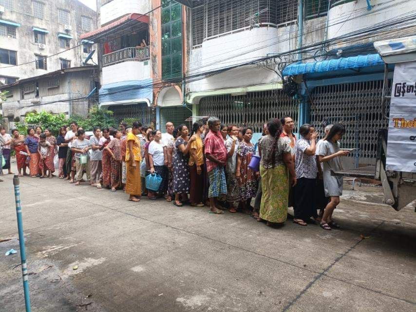 စားအုန်းဆီတန်းစီဝယ်ယူနေရသော ပြည်သူများမြင်ကွင်း(ဓာတ်ပုံ- မြန်မာနိုင်ငံ ဆီကုန်သည်နှင့် ဆီလုပ်ငန်းရှင်များအသင်း)