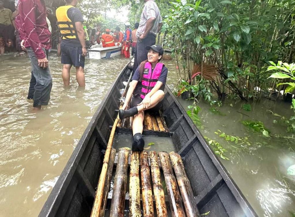 “ရေကြည်က ရေကြောက်ပေမဲ့ ရင်ထဲမှာရှိတဲ့ မေတ္တာတရားတွေကြောင့် အပြေးအလွှားလေးရောက်ခဲ့ပါပြီရှင့်။ ရေကြည်တို့ ပဲခူးရေဘေးနဲ့ပတ်သက်ပြီး စိတ်မကောင်းလည်း တော်တော်လေးဖြစ်မိပါတယ်။ အမြန်ဆုံးအဆင်ပြေကြပါစေလို့ပဲ ဆုတောင်းနေပါတယ်။ တကယ် လိုအပ်နေတဲ့နေရာ စားသောက်ကုန်နဲ့ သက်ကယ်အင်္ကျီတွေ ကလျာဏမိတ္တအသင်းကိုလှူလိုက်တာပါ”လို့ အကယ်ဒမီ ဝေဠုကျော်ရဲ့ ဇနီးဖြစ်သူ ရေကြည်ချမ်းမြက MTNews Entertainment ကို ပြောပါတယ်။