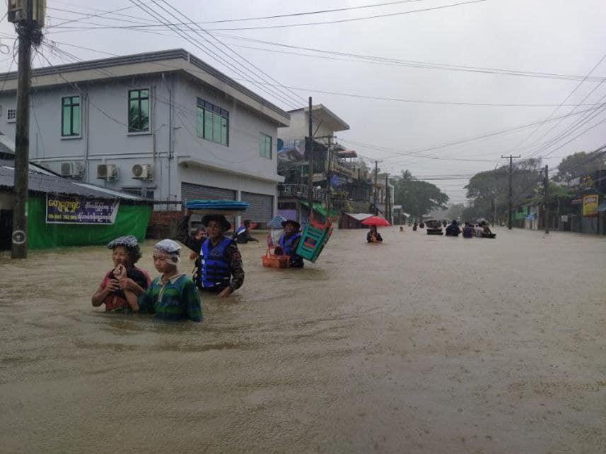 ပဲခူးတိုင်းဒေသကြီးအတွင်း ၅၉ နှစ်တွင်း အမြင့်ဆုံးမိုးရေချိန်ဖြင့် ပဲခူးမြစ် ရေကြီးမှုကြောင့် ရပ်ကွက် ၁၂ ရပ်ကွက်နှင့် ကျေးရွာ ၄ ရွာရှိ အိမ်ခြေ ၁၃၀၀ ခန့် ထိခိုက်ပျက်စီးခဲ့ပြီး လူဦးရေ ၅၆၀၀ ခန့် ရေဘေးသင့်ခဲ့ကြောင်း၊ လက်ရှိတွင် ပဲခူးတိုင်းဒေသကြီးဝန်ကြီးချုပ်ကိုယ်တိုင် ဦးဆောင်၍ ကူညီကယ်ဆယ်ရေး ယာယီစခန်းများဖွင့်လှစ်ပြီး ကယ်ဆယ်ရေးလုပ်ငန်းများ ဆောင်ရွက်နေကြောင်း နိုင်ငံတော်စီမံအုပ်ချုပ်ကောင်စီ (SAC) သတင်းထုတ်ပြန်ရေးအဖွဲ့မှ ပြန်လည်ဖြေကြားထားသည်။