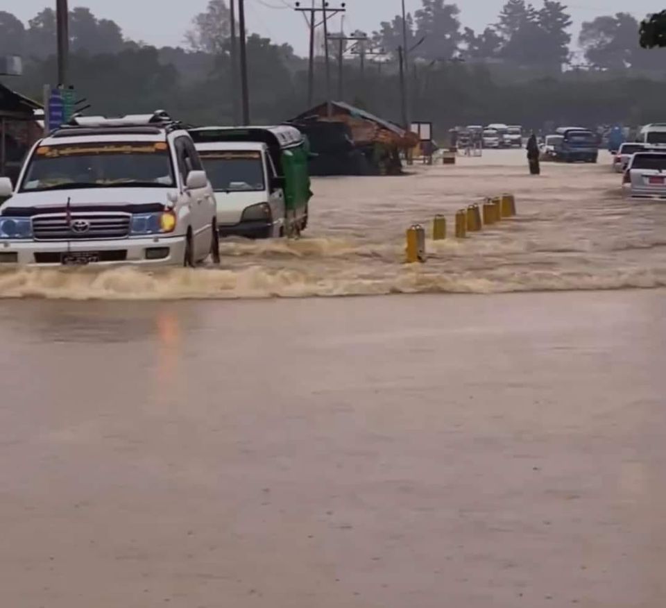 မိုးဆက်တိုက်ရွာသွန်းနေတာကြောင့် ဒီနေ့ကစပြီး အမြန်လမ်းတစ်လျှောက် ရေကြီးရေလျှံဖြစ်ပေါ်နေလို့ ယာဥ်ငယ်တွေ ဖြတ်သန်းဖို့ အခက်အခဲဖြစ်ပေါ်နေတယ်လို့ သိရပါတယ်။
