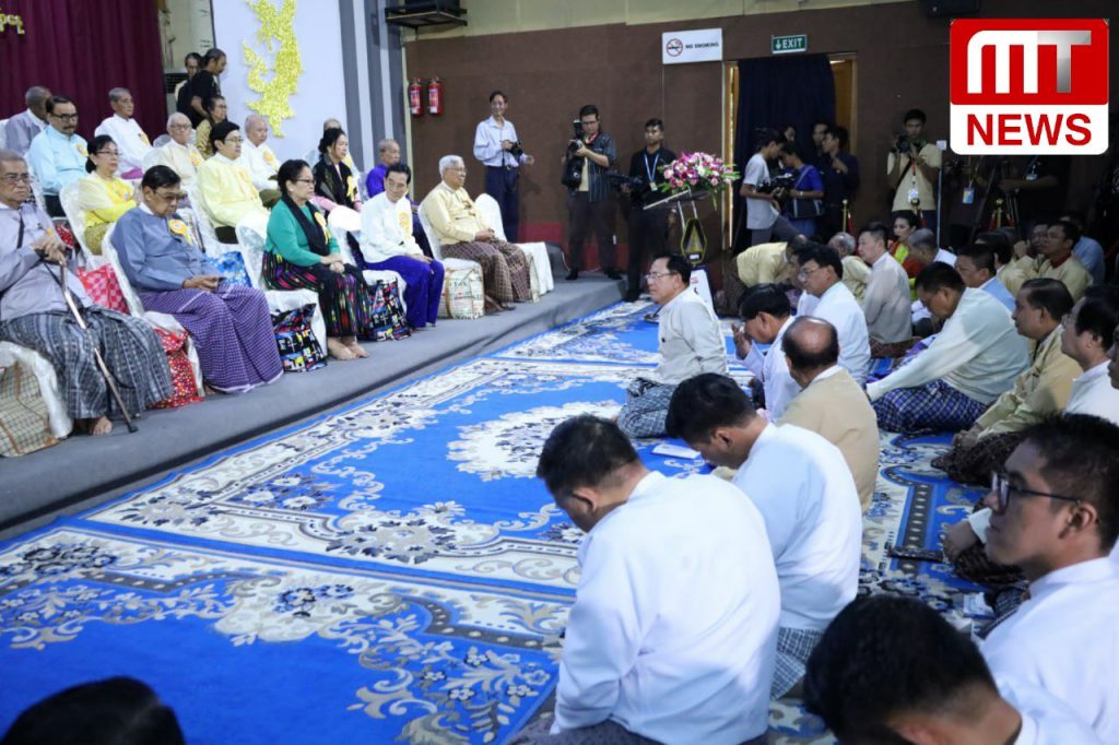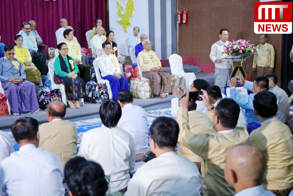 “ဒီနှစ်သက်ကြီးပူဇော်ပွဲမှာ အနုပညာရှင်တွေ အားလုံး နီးပါးတက်ရောက်တဲ့အတွက် ရင်ထဲ ဝမ်းသာပီတိဖြစ်ရပါတယ်။ ဒီရုပ်ရှင်သက်တမ်းကာလ တစ်လျှောက်မှာ ဒီနေ့စင်ပေါ်မှာ အပူဇော်ခံသက်ကြီးပညာရှင်များဟာ နိုင်ငံ့အကျိုး၊ ဒေသအကျိုး၊ ပြည်သူ့အကျိုးကို အနုပညာစွမ်းအားနဲ့ စွမ်းဆောင်ခဲ့တဲ့သူတွေဖြစ်တယ်။ ရိုသေ လေးစားစွာ ဂုဏ်ယူကန်တော့ပါကြောင်း နိုင်ငံတော်ကိုယ်စား ပြောကြားလိုပါတယ်။ အခုဆိုရင် ကျွန်တော်တို့ မြန်မာ့ရုပ်ရှင်နဲ့တကွ အနုပညာနယ်ပယ်ကလည်း ကိုဗစ်ကြောင့်၊ နိုင်ငံတော်မှာ ဖြစ်ပေါ်တဲ့ အရေးအခင်းကြောင့် တုံ့ဆိုင်းပြိုကွဲလုနီးပါးဖြစ်ခဲ့ရတယ်။ ယနေ့မှာတော့ ပုံမှန်နီးပါးပြန်ရောက်လာပြီလို့ ပြောရမှာဖြစ်ပါတယ်။ တချို့ဆိုရင် ကျွန်တော်ကြားရတာ ပုံမှန်ထက် ပိုပြီးတောင်အနုပညာကို ငတ်မွတ်နေတဲ့ ပြည်သူတွေတောင်းဆိုချက်အရ အနုပညာရှင်အားလုံး အရင်ထက်ပိုလုပ်ကိုင်နေရတယ်လို့ သိရလို့ အင်မတန်မှ ဝမ်းသာတယ်။ မေတ္တာငတ်နေတဲ့ ပြည်သူတွေကို မေတ္တာတွေပေးနိုင်ပါစေလို့လည်း ကျွန်တော်ပြောကြားလိုပါတယ်။ မကြာမီမှာလည်း ၂၀၂၃ ခုနှစ်အတွက် မြန်မာ့ရုပ်ရှင်မြှင့်တင်ဖို့အတွက် မြန်မာ့ရုပ်ရှင်အကယ်ဒမီပေးပွဲ အခမ်းအနားလည်း ဆောင်ရွက်ဖို့ ရှိပါတယ်။ နှစ်စဥ်ပြုလုပ်နေကြဖြစ်တဲ့ ဖေဖော်ဝါရီလမှာ ကျင်းပမှာဖြစ်ပါတယ်။ ဒီအခမ်းအနားကို မနှစ်ကလို နေပြည်တော်မှာ ကျင်းပဖို့ မြန်မာနိုင်ငံရုပ်ရှင်အစည်းအရုံးနဲ့ ညှိနှိုင်းနေပါတယ် ”လို့ ပြန်ကြားရေး၀န်ကြီးဌာန ပြည်ထောင်စု၀န်ကြီး ဦးမောင်မောင်အုန်းကပြောပါတယ်။