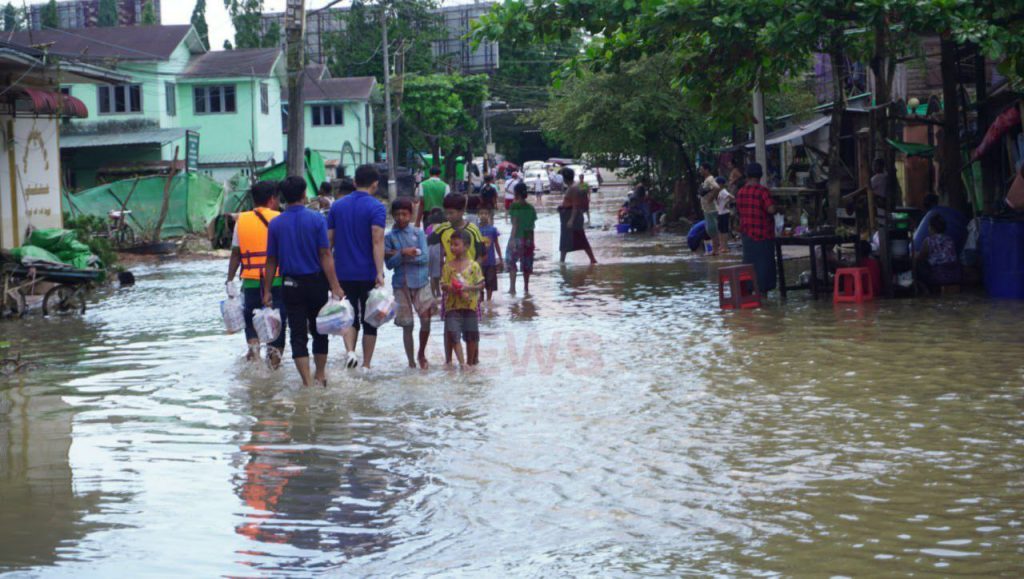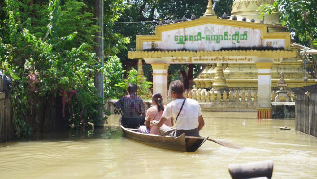 လတ်တလောမှာ ကုန်မြင့်ပိုင်းတွေဖြစ်တဲ့ ရွှေသာလျောင်းဘုရားဘက်မှာရှိတဲ့ ကုန်းမြင့်ပေါ်က ဘုန်းကြီးကျောင်းတွေမှာ ရေဘေးသင့်ပြည်သူတွေအတွက် အနယ်နယ်အရပ်ရပ်ကနေ လာရောက်ကူညီတဲ့ ဆန်၊ ဆီ၊ ကြက်ဥ၊ ကုန်ခြောက်နဲ့ နေ့လည်စာအတွက် ထမင်းထုပ်တွေကို