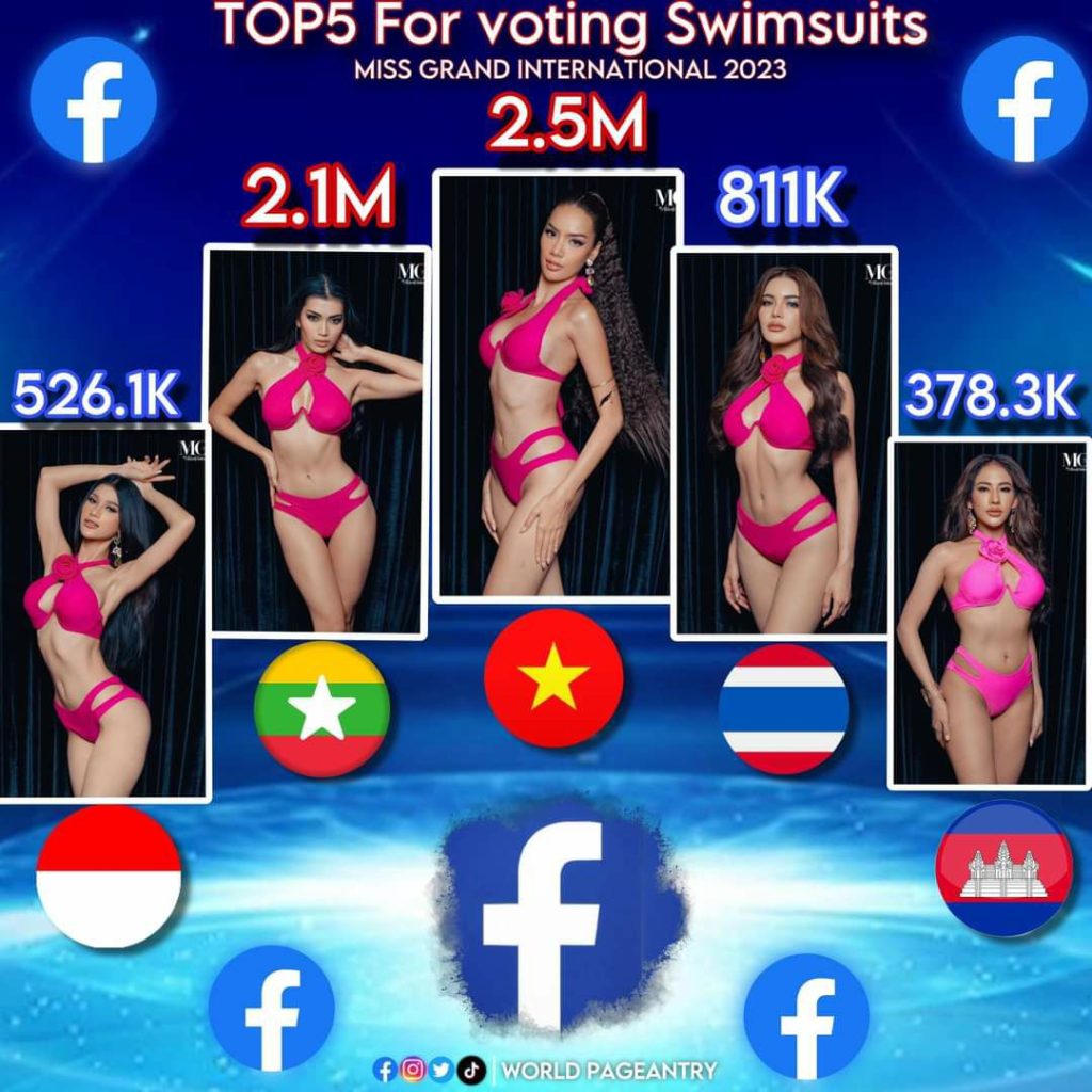 လက်ရှိ မြန်မာနိုင်ငံကိုယ်စားပြု အလှမယ် နီနီလင်းအိမ်ကတော့ Top 10 Miss Popular Vote Ranking မှာတော့ ၁၄ ရာခိုင်နှုန်း စာရင်းဝင်နေတာလည်းဖြစ်ပါတယ်။ Miss Grand Winner ရဖို့အတွက် 1 Dollar နဲ့ နီနီလင်းအိမ်ကို Vote ပေးကြရမှာဖြစ်ပါတယ်။ မြန်မာပြည်က ပရိသတ်တွေကလည်း အလှမယ် နီနီလင်းအိမ်အတွက် အားလုံး ဝန်းရံနေလျှက်ရှိပါတယ်။ Top 5 For Voting Swimsuits စာရင်းတွေလည်း ထွက်ပေါ်လာရာမှာ Vietnam က Miss Le Hoang Phuong က 2.5 M မှာ ရပ်တည်နေသလို နီနီလင်းအိမ်ကတော့ Facebook 2.1 M နဲ့ ရပ်တည်နေတာလည်း ဖြစ်ပါတယ်။