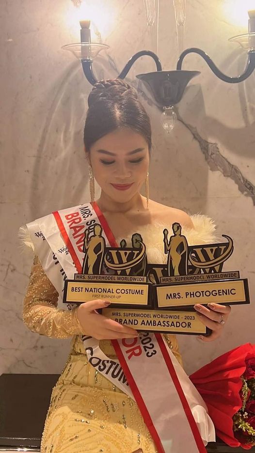 Mrs Supermodel Worldwide Myanmar 2023 အလှမယ် Mrs. မွန်းက Mrs super Model Worldwide Brand Ambassador ဆု ၊ Mrs Photogenic နဲ့ Mrs Best National Costume 1st ဆုကို ဆွတ်ခူးရရှိခဲ့တယ်လို့ သိရပါတယ် ။