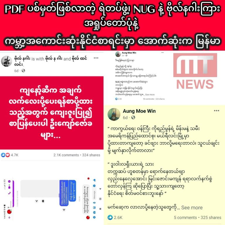 မေး။ ။ အမေရိကန်နဲ့ အနောက်နိုင်ငံတွေရဲ့ ထောက်ပံ့မှုတွေနဲ့ လည်ပတ်နေတဲ့ NUG နဲ့ သူ့လူတွေက ရုရှားသမ္မတနဲ့ SAC ဥက္ကဋ္ဌ တွေ့ဆုံမှုအပေါ် မနှစ်သက်တာ၊ မထောက်ခံတာ စတဲ့ အပြုအမူတွေ တော်တော်လုပ်ကြတယ်ပေါ့။ အဲဒီတော့ အမေရိကန်ရဲ့ ထောက်ပံ့မှုတွေကြောင့် NUG- PDF တွေရဲ့ တိုက်စစ်ဆင်မှုက ပိုမြင့်လာနိုင်သလား။ နောက်တစ်ခုက SAC ဥက္ကဋ္ဌတာဝန်ယူထားတဲ့ နောက်ဆုံးခြောက်လနဲ့လည်း တိုက်ဆိုင်နေချိန်ဆိုတော့ ဒီတွေ့ဆုံမှုက တိုက်ခိုက်မှုအရှိန်တစ်ခုခုကို မြှင့်သွားနိုင်လား၊ ထိန်းနိုင်ချေရှိလား အမြင်လေးပြောပေးပါ။