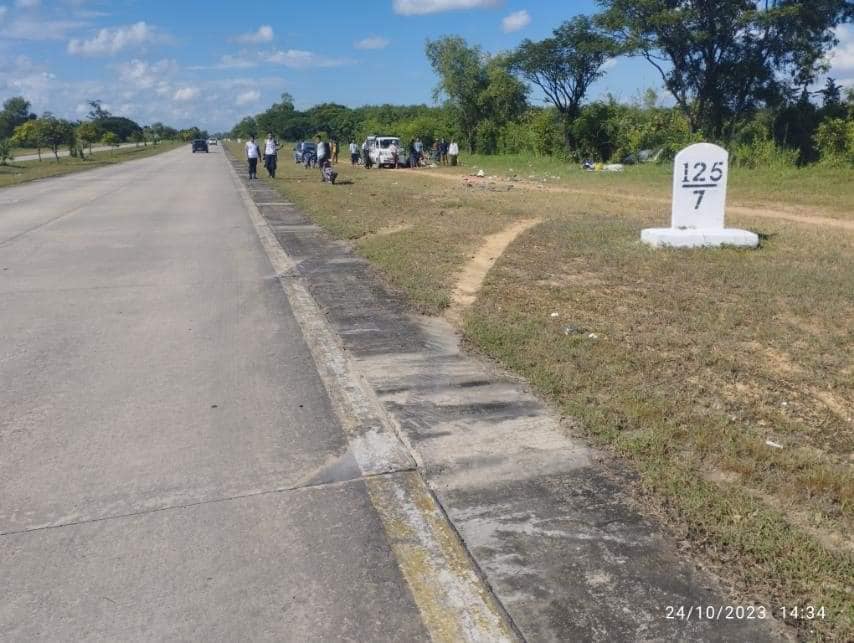ရန်ကုန်-မန္တလေးအမြန်လမ်း မိုင်တိုင်အမှတ် ၁၂၅ မိုင်အနီးမှာ ဒီနေ့ အောက်တိုဘာ၂၄ ရက် မွန်းလွဲ ၂ နာရီခွဲခန့်အချိန်မှာ အိမ်စီးကား Toyota Landcruiser KYN 5E/ ယာဥ်ဟာ ၁၂၅ မိုင် ၇ ဖာလုံအရောက်မှာ ကားရှေ့ဘီးပေါက်ပြီး တိမ်းမှောက်ရာက အမြန်လမ်းရဲ့ လမ်းဘေးမြောင်းထဲ ပြုတ်ကျခဲ့ရတာပါ။