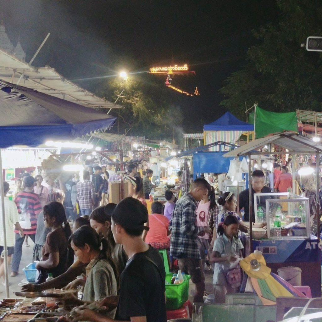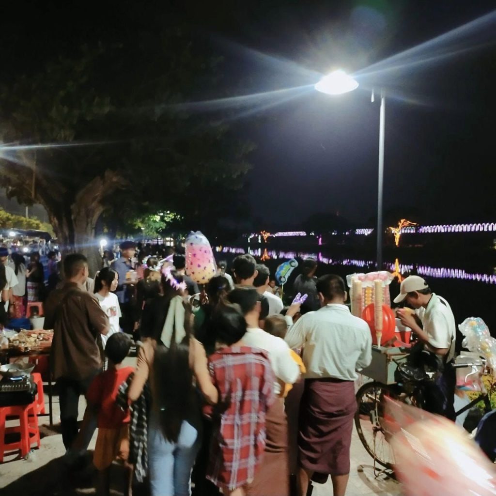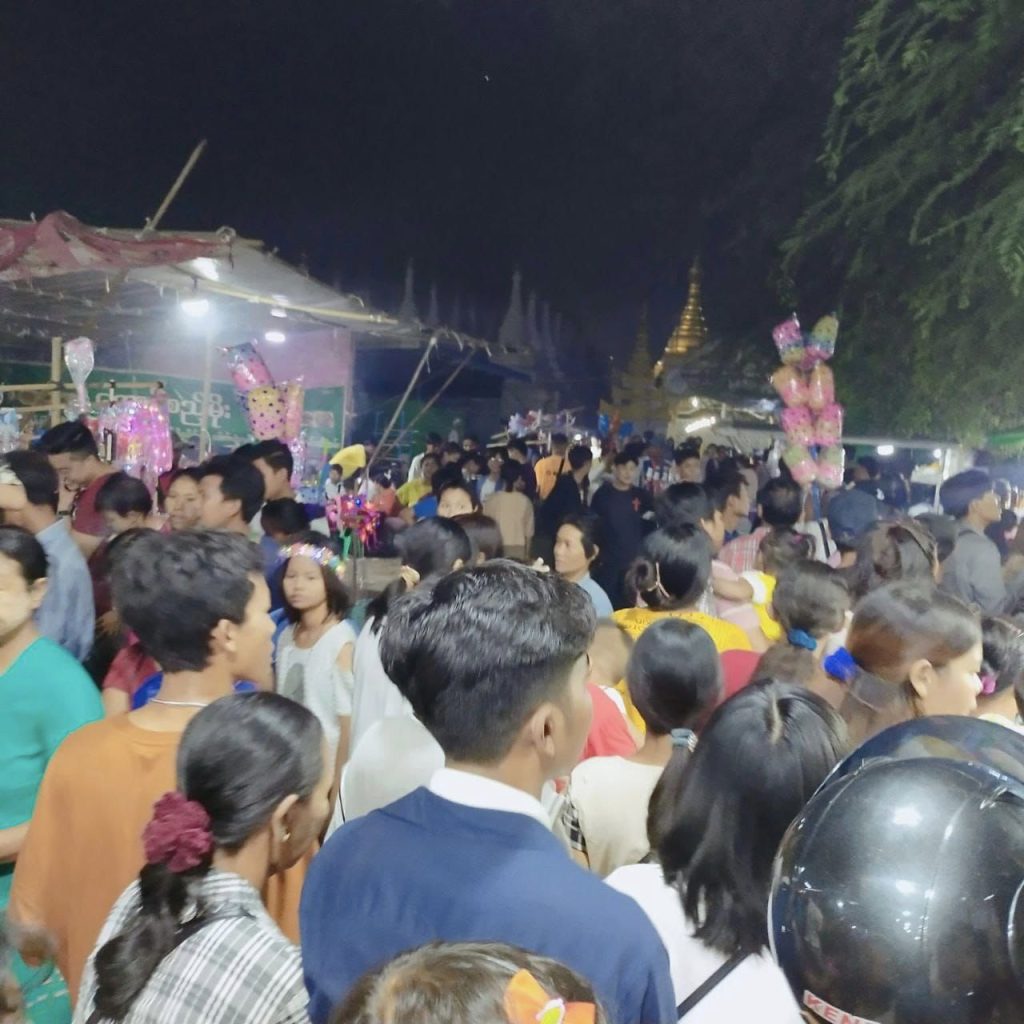“မနက်ကနေ အခုညပိုင်းအထိ လူတွေတစ်နေကုန်စည်ကားနေတာ။ ပျော်စရာလည်း အလွန်ကောင်းပြီး ကြည်နူးစရာလည်း ကောင်းတဲ့ နေ့ထူးနေ့မြတ်တစ်ရက်ပါ။ မနက်ဖြန်လည်း ဒီနေ့လိုပဲစည်ကားလိမ့်မယ်လို့ထင်တာပဲ။ စျေးလည်းအရမ်းရောင်းကောင်းလို့ ပင်ပန်းပေမဲ့လည်း မမောနိုင်ဘူး”ဟု ပွဲစျေးရောင်းသူတစ်ဦးက ကြည်နူးစွာ ပြောသည်။