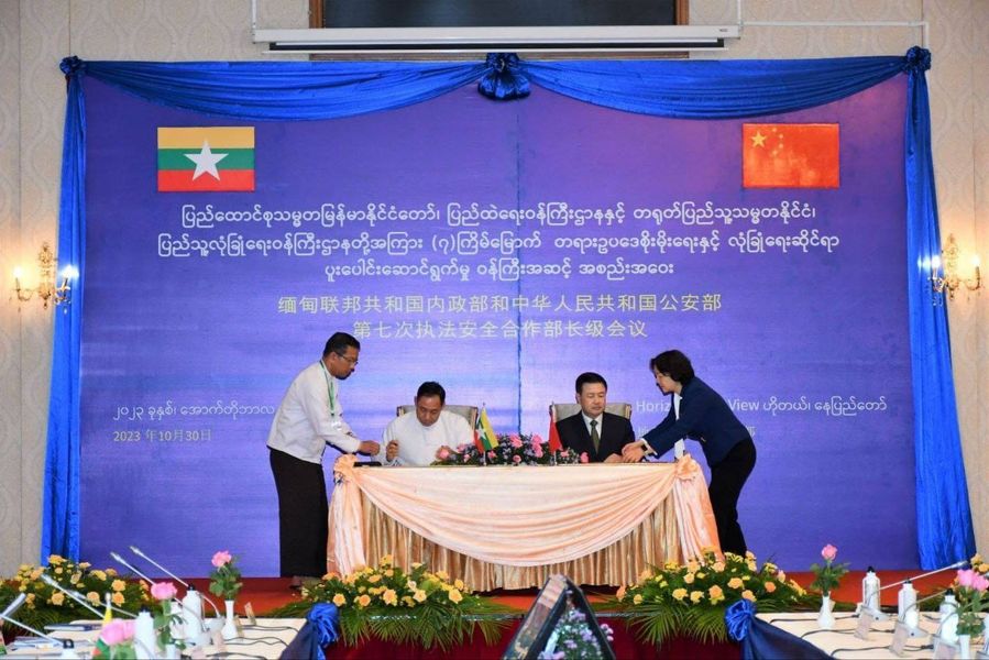 ဆက်သွယ်ရေးစနစ် အသုံးပြုလိမ်လည်မှု၊ ဆိုက်ဘာရာဇဝတ်မှု၊ ငွေကြေးခဝါချမှု၊ နယ်စပ်ဖြတ်ကျော်လောင်းကစားမှု စသည့် နိုင်ငံဖြတ်ကျော်မှုခင်းများအား ပူးပေါင်းတိုက်ဖျက်ရေးအတွက် ပြည်ထဲရေးဝန်ကြီးဌာနနှင့် တရုတ်နိုင်ငံ ပြည်သူ့လုံခြုံရေးဆိုင်ရာဝန်ကြီးဌာနတို့အကြား ယနေ့ နေပြည်တော်၌ ဆွေးနွေးခဲ့သည်။