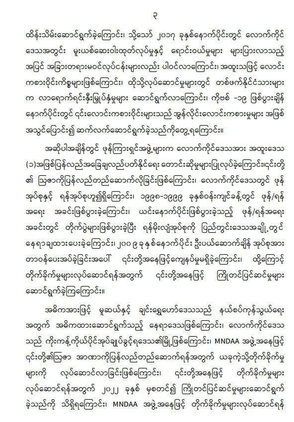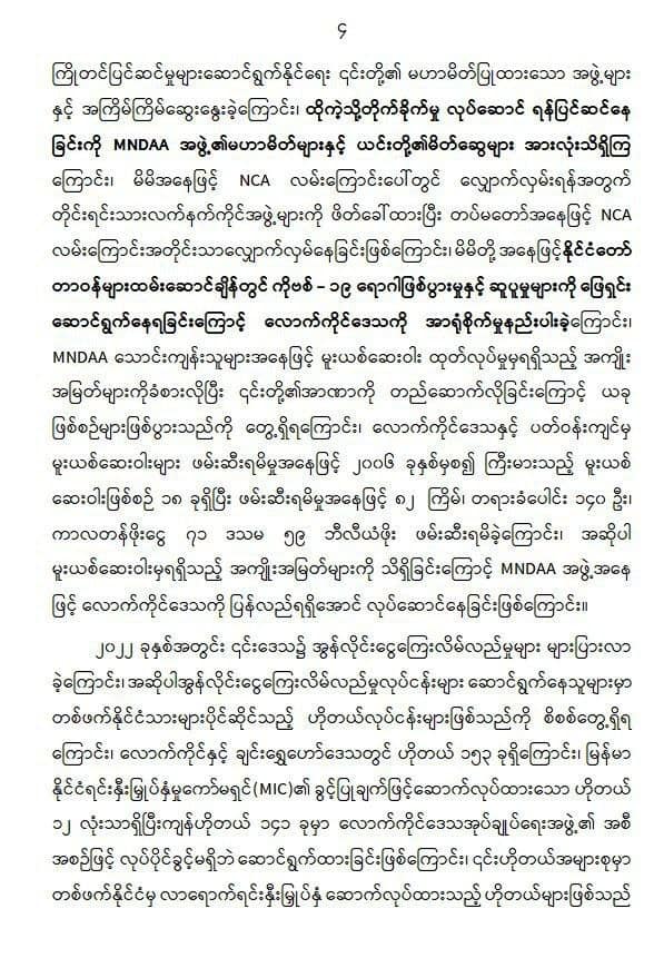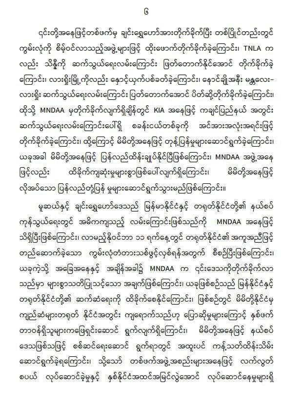 ရှမ်းမြောက်ဒေသနှင့် စစ်ကိုင်းတိုင်းအတွင်း ဖြစ်ပွားနေမှုများကို လက်တုံ့ပြန်သွားမည်ဟု SAC ဥက္ကဋ္ဌ ပြောကြား